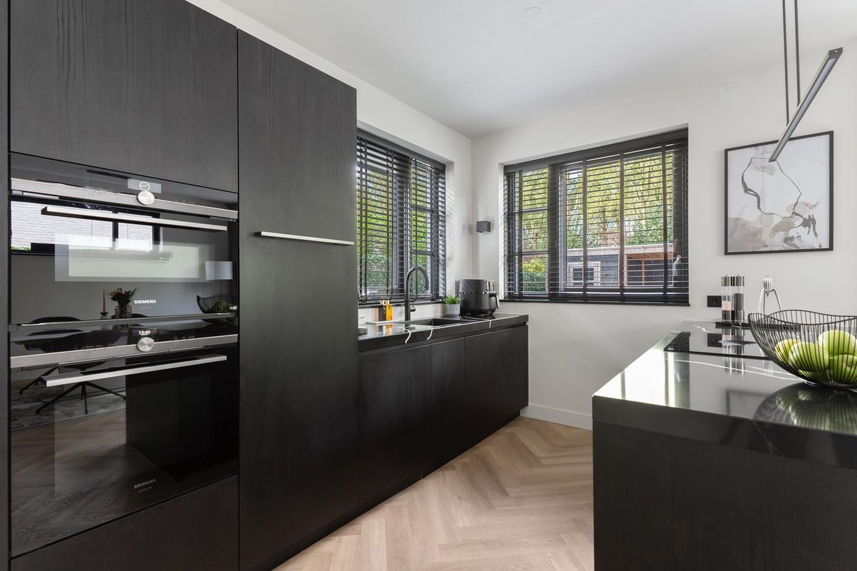 De open keuken is het hart van het huis: een plek waar koken, tafelen en samenzijn samenkomen. De keuken is voorzien van een ruim schiereiland en uitgerust met hoogwaardige inbouwapparatuur, waaronder een wijnkoeler, oven, combi-oven, koelkast, vriezer, vaatwasser en een Quooker. Vanuit de keuken leiden openslaande deuren naar de fraai aangelegde achtertuin. Een heerlijke plek om te genieten van de zon en het groen om je heen.