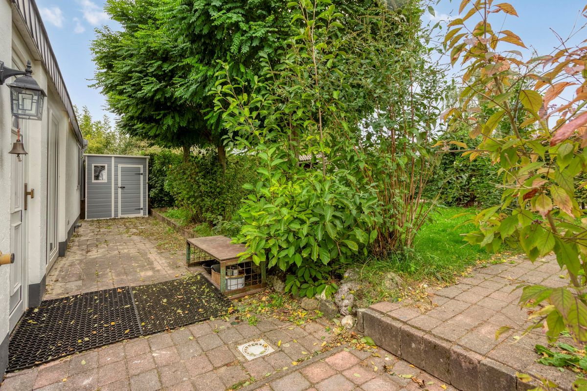 Het huis is gelegen op een royale kavel met een grote tuin, die volop mogelijkheden biedt voor tuinliefhebbers of om in alle rust van de natuur te genieten. Aan de voorzijde bevindt zich een ruime oprit met plaats voor meerdere auto’s.