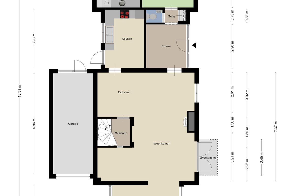 Via het tussenportaal met trappenhuis heeft u toegang tot de eerste verdieping en de kelder.