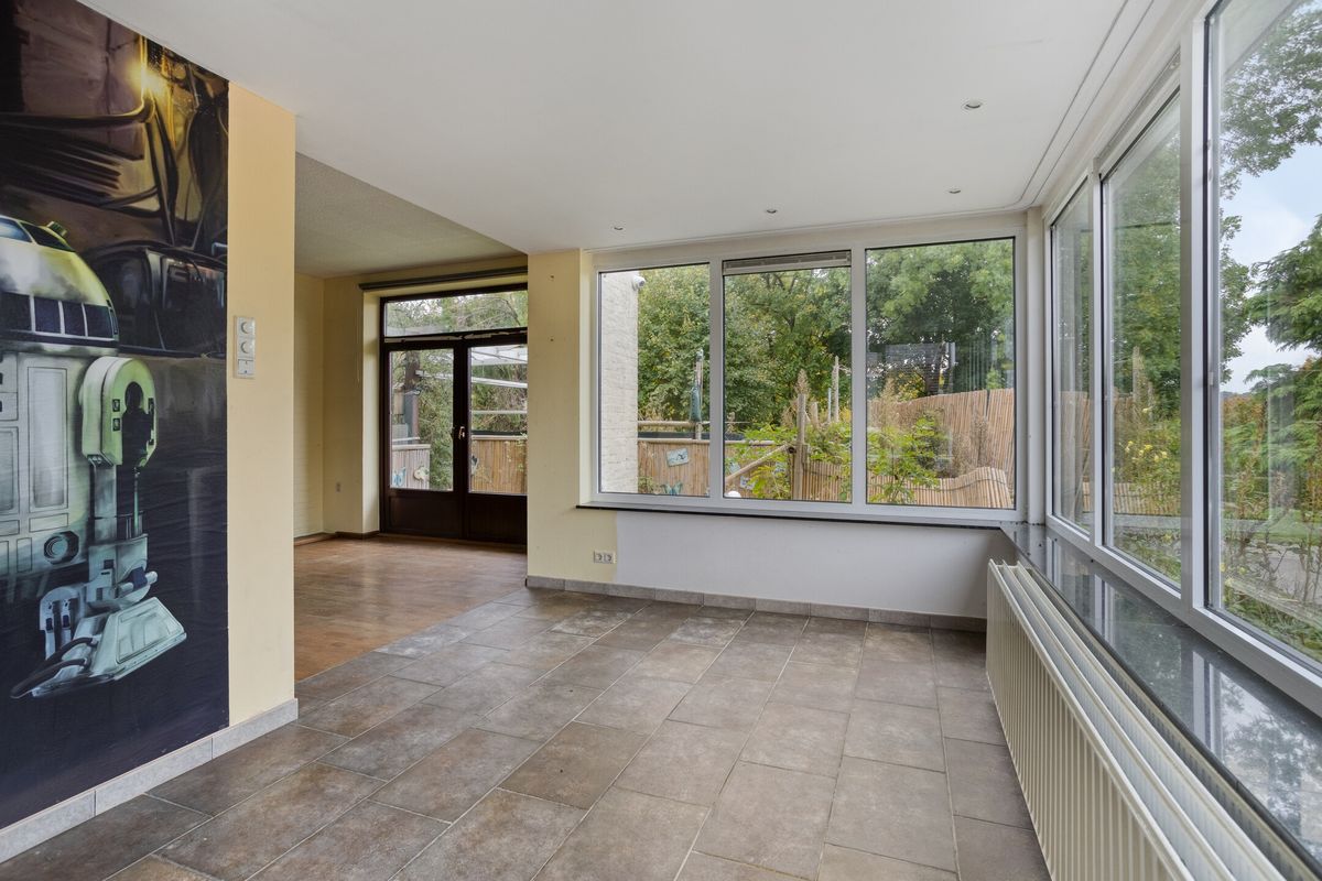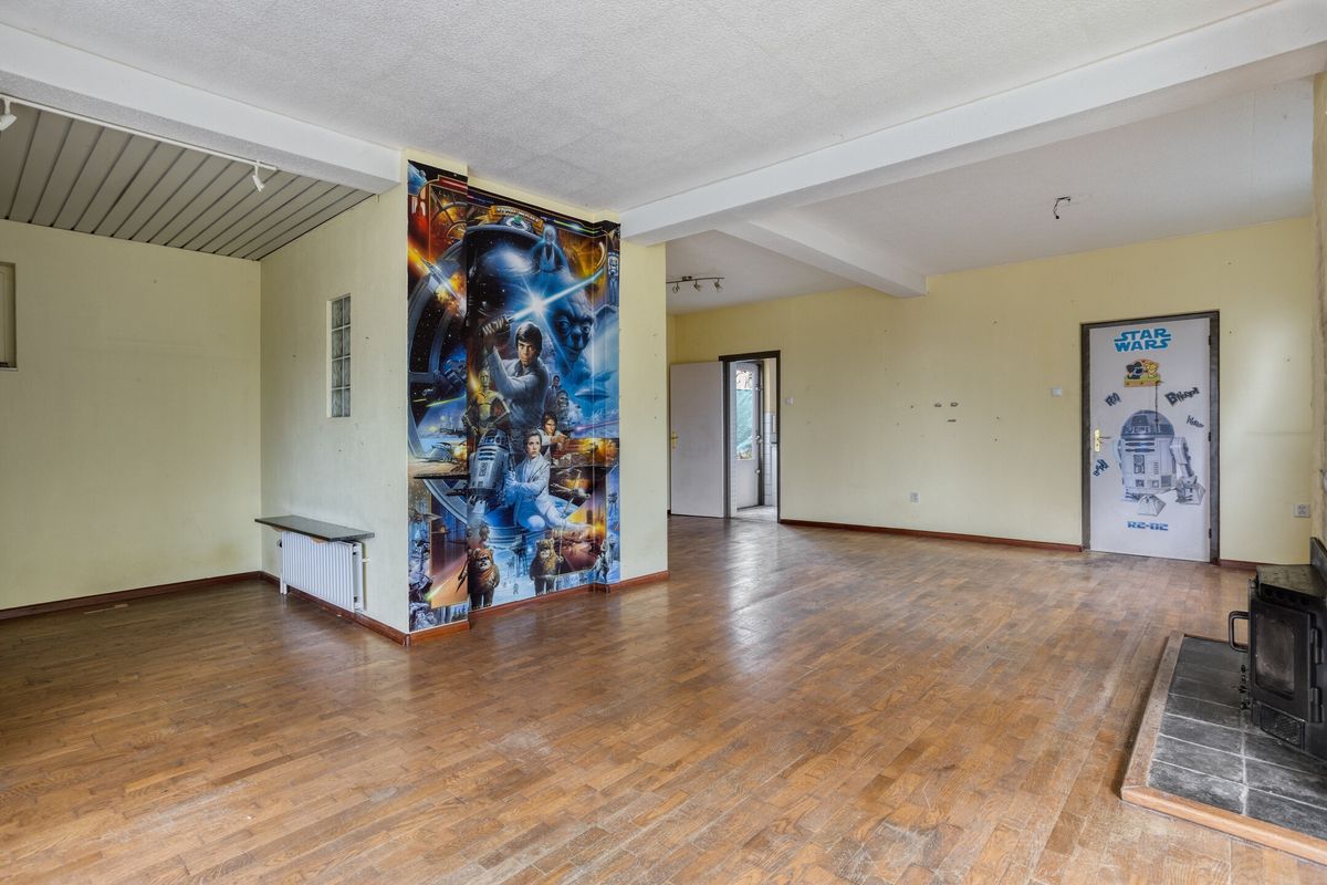 Terug via de hal, heeft u toegang tot de zeer ruime woonkamer met allesbrander. Via de tuindeuren heeft u toegang tot de tuin.