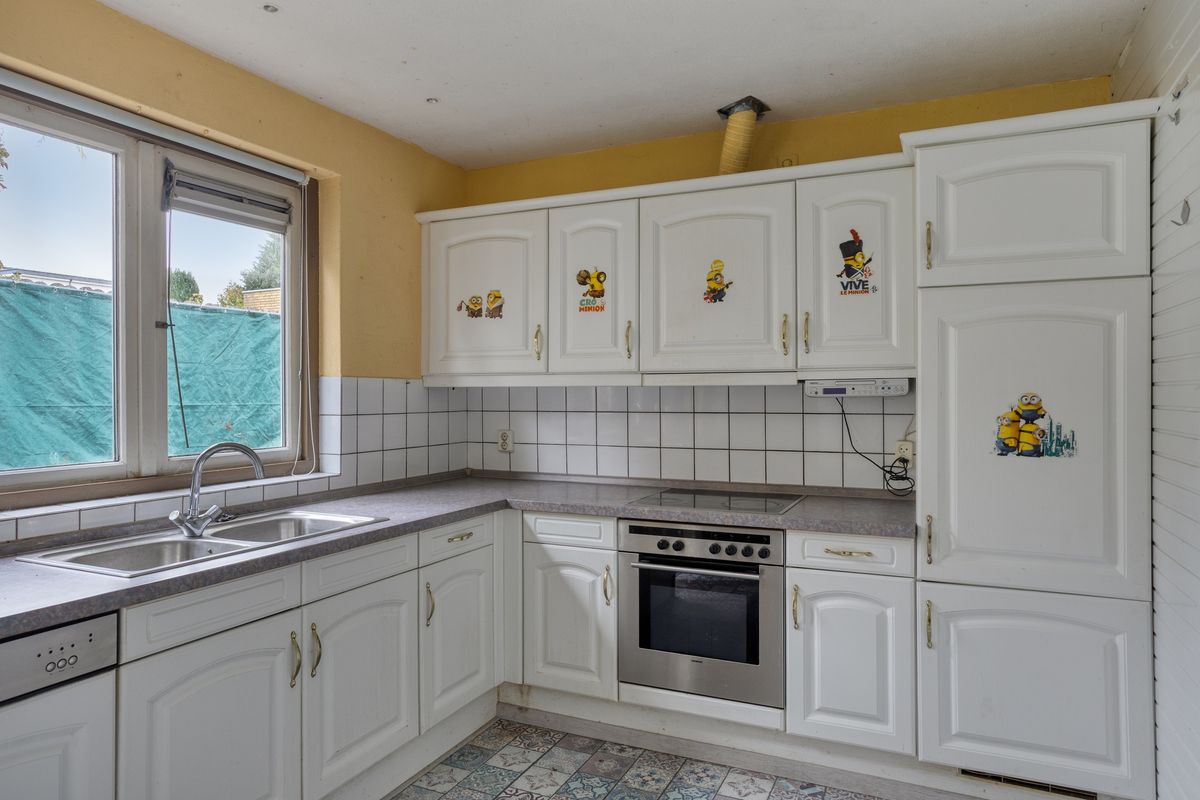 De gesloten keuken met hoekopstelling is eenvoudig uitgevoerd. De keuken is v.v. vaatwasser, oven, 4 pits ceramische kookplaat en een ingebouwde koelkast. Vanuit de keuken heeft u tevens toegang tot de tuin en de aangebouwde garage.