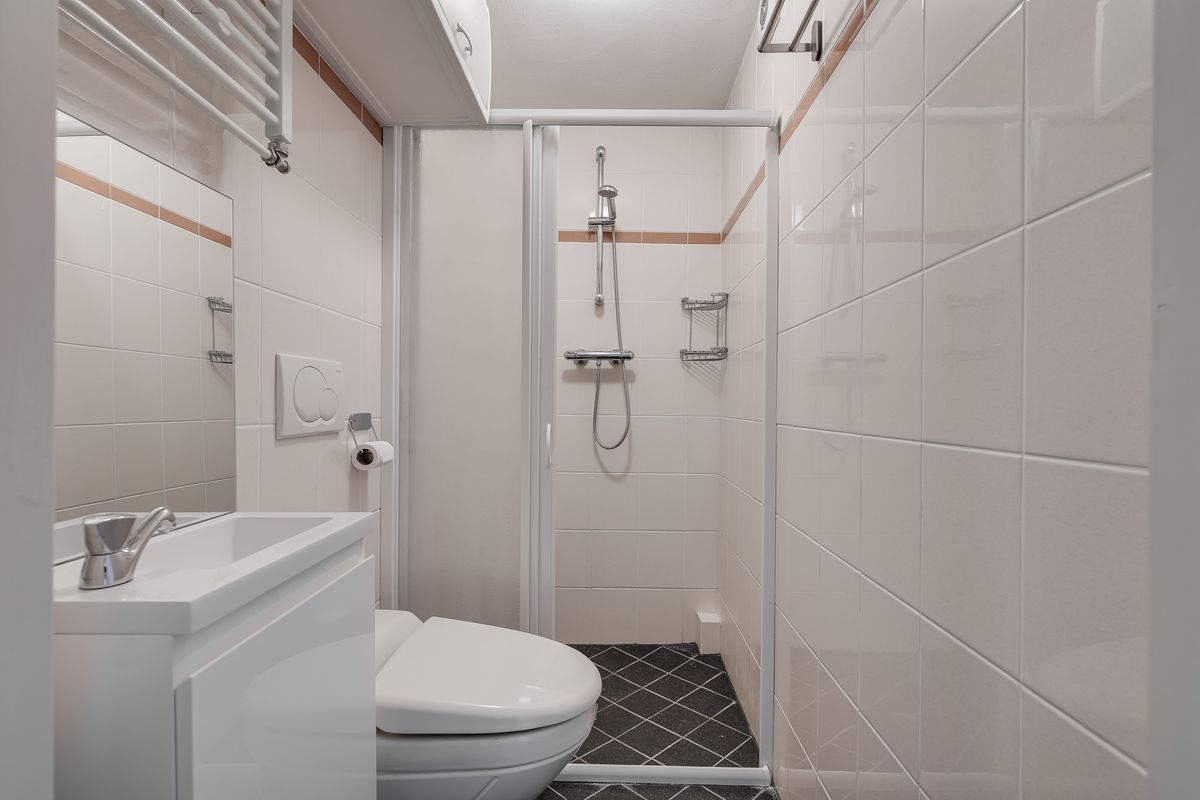 Ground floor: Upon entering you step into a spacious hallway with a fuse box. The kitchen is equipped with a gas stove, extractor hood, and practical storage space. On the ground floor you will also find the neat bathroom with a shower, toilet, sink, towel radiator and cabinet.