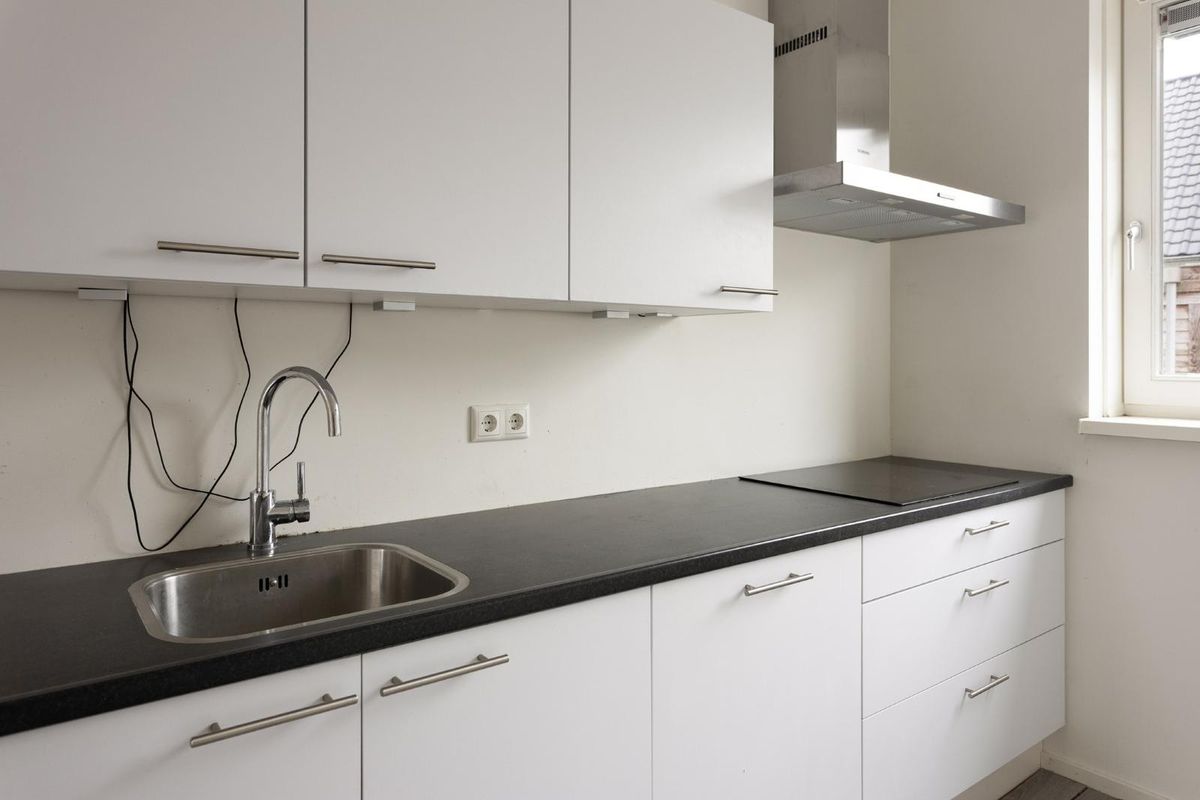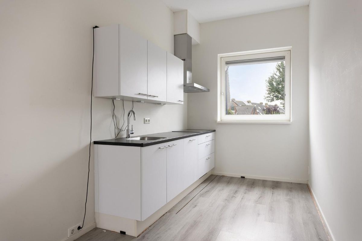 Aan de voorzijde ligt de keuken, uitgevoerd in een strakke, eenvoudige opstelling met volop kastruimte.