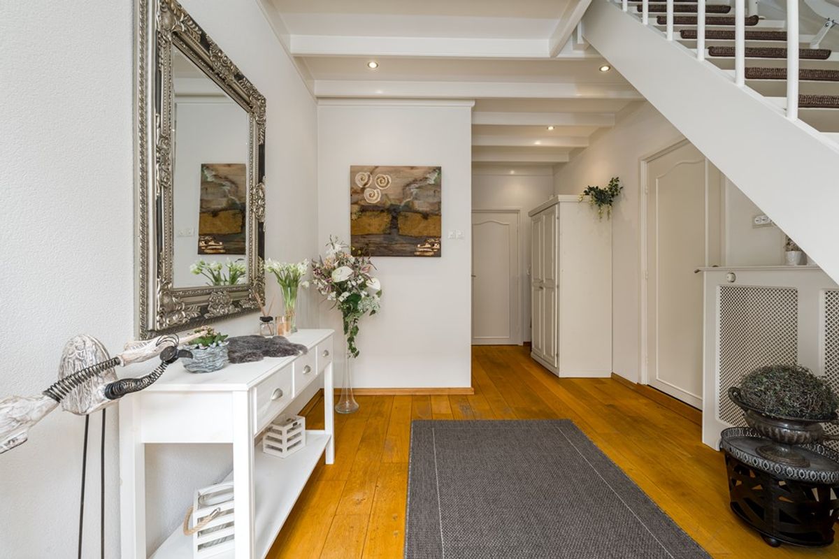 De centrale hal vormt het verbindende hart van de woning en biedt toegang tot het voorhuis, alsmede de badkamer en het separate toilet.