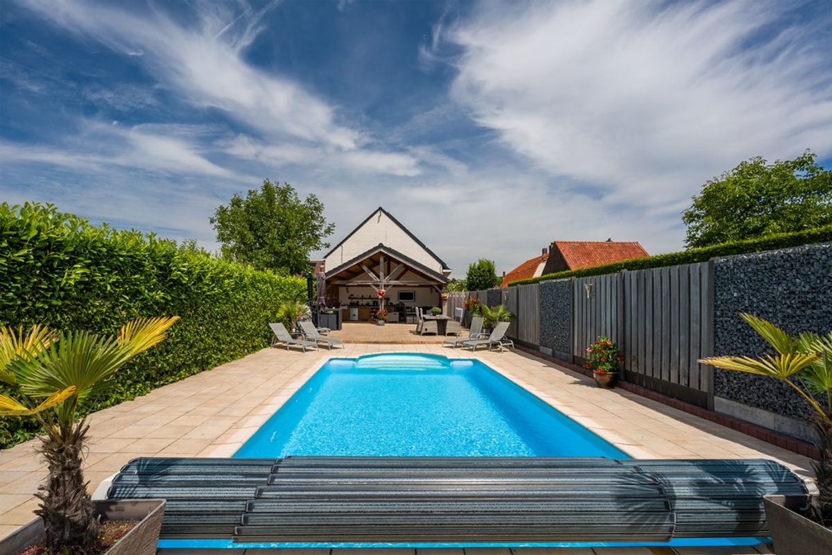 Aansluitend treft u het zonneterras en het zwembad, omgeven door weelderige beplanting met een tropische uitstraling, waardoor een permanent vakantiegevoel wordt gecreëerd.
