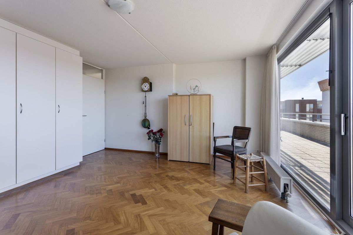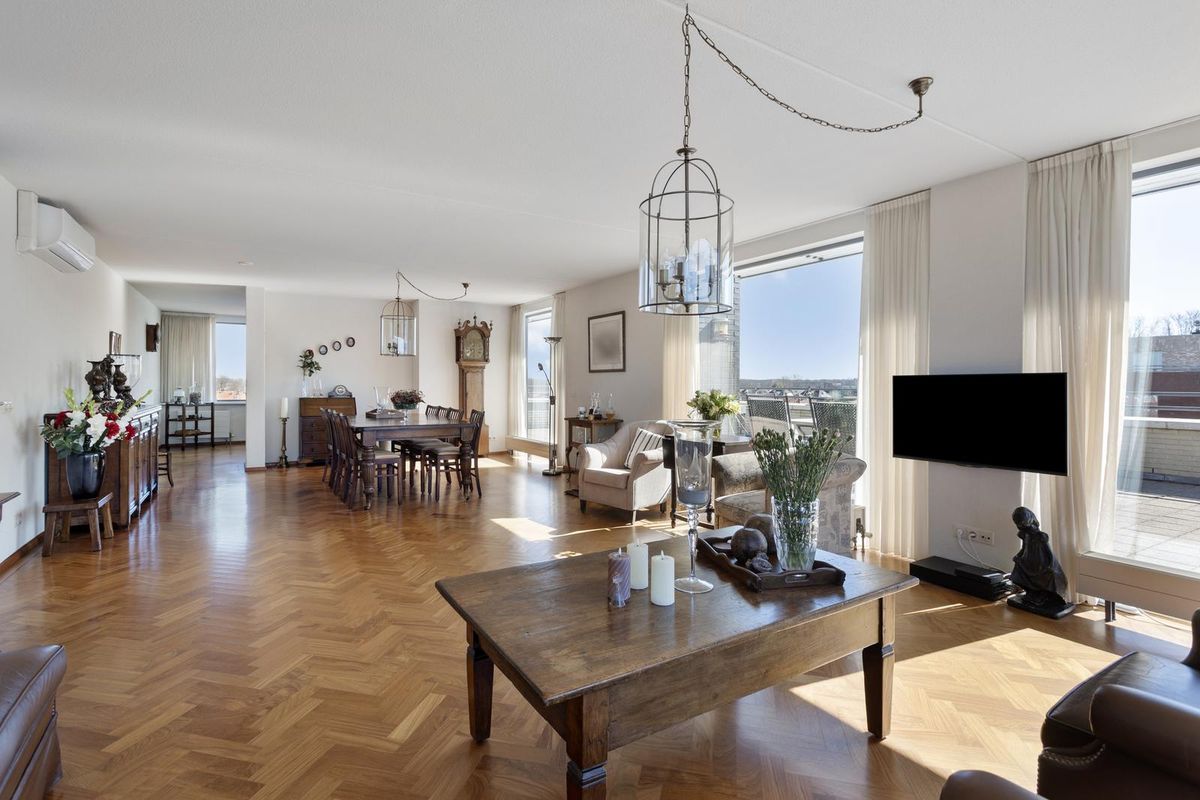 Zeer royaal penthouse met een eigen parkeerplaats in de inpandige parkeergarage, twee slaapkamers, een royaal dakterras (111m²) op het zuidwesten en een fraaie en zeer lichte woonkamer gelegen op een fantastische locatie.