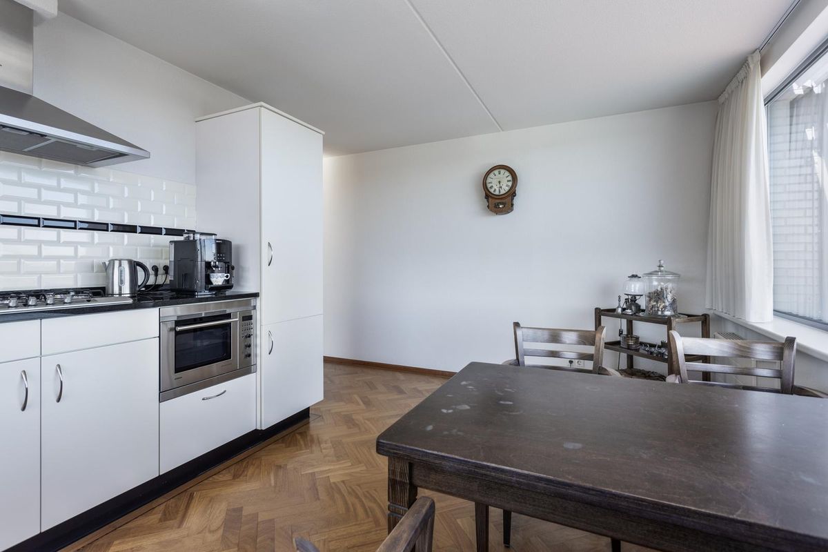 Ga tijdens de bezichtiging eens aan de eettafel zitten en kijk dan eens om je heen. Dan kun je je vast heel eenvoudig inbeelden hoe je de kamer kunt gebruiken. Het licht dat door twee grote glaspartijen naar binnen komt, laat het alleen nog maar ruimer lijken. Beeld je eens in hoe je hier alles hebt om samen te eten, te borrelen, spelletjes te spelen of wat dan ook. Ruimte om te genieten dus, met de ruime keuken om de randvoorwaarden in te bereiden.