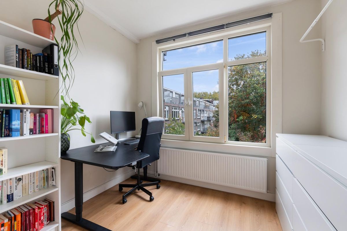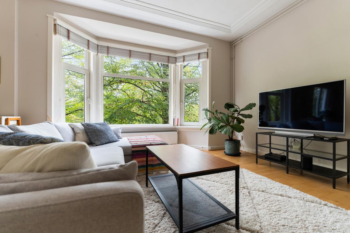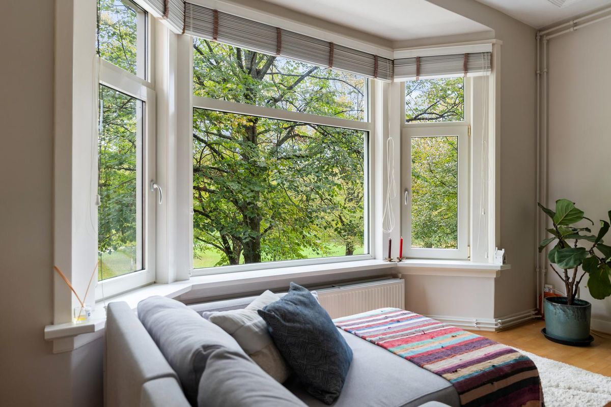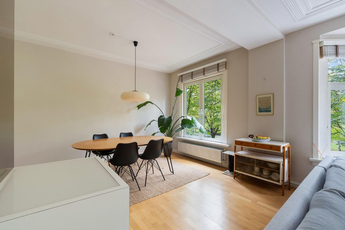 Ruime overloop met meterkast en toegang tot alle vertrekken op de verdieping. De ruime woon-/eetkamer is gelegen aan de voorzijde. Deze kamer beschikt over vele raampartijen waardoor er veel licht de woning binnentreedt wat zorgt voor een fijne, lichte sfeer. De raampartijen bieden een schitterend uitzicht over het Vroesenpark. Het hoge plafond is voorzien van karakteristieke ornamenten die zorgen voor een ruime charmante, authentieke uitstraling. Er is een mooie, natuurlijke scheiding tussen het leef- en eetgedeelte, wat zorgt voor een prettige indeling van de ruimte. Via de overloop bereik je de keuken. Deze keuken is mooi afgewerkt en beschikt over diverse soorten inbouwapparatuur zoals een 4-pits gasfornuis met afzuigkap, oven en een vaatwasser. Via de keuken bereik je het balkon, gelegen op het oosten. Hier kan je heerlijk genieten in de ochtend met een kop koffie! De master bedroom is gelegen aan de achterzijde van de woning. Dit is een ruime en lichte kamer. De 2e slaapkamer met vaste kast is multifunctioneel in te richten als bijvoorbeeld werk-, kinder- of slaapkamer. De moderne, volledig betegelde badkamer beschikt over een ligbad, douche, wasmachineaansluiting, toilet en een handdoekradiator.