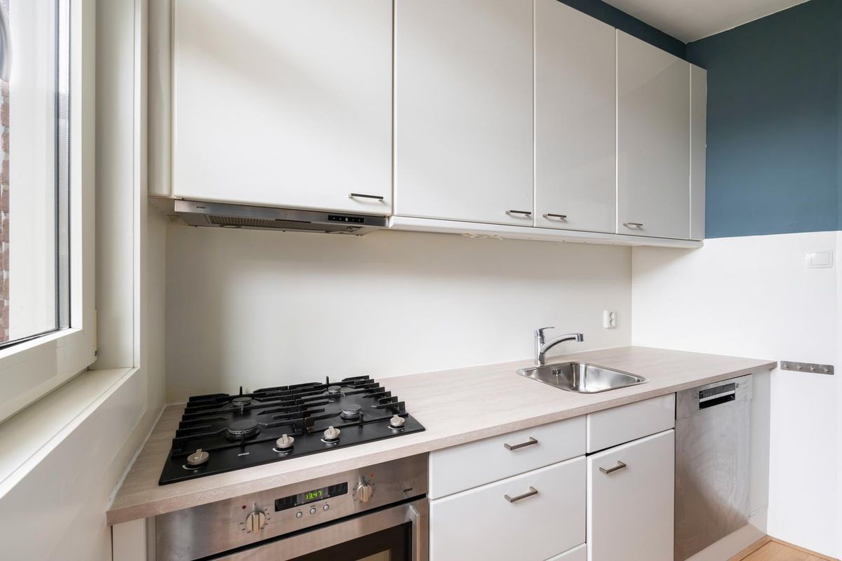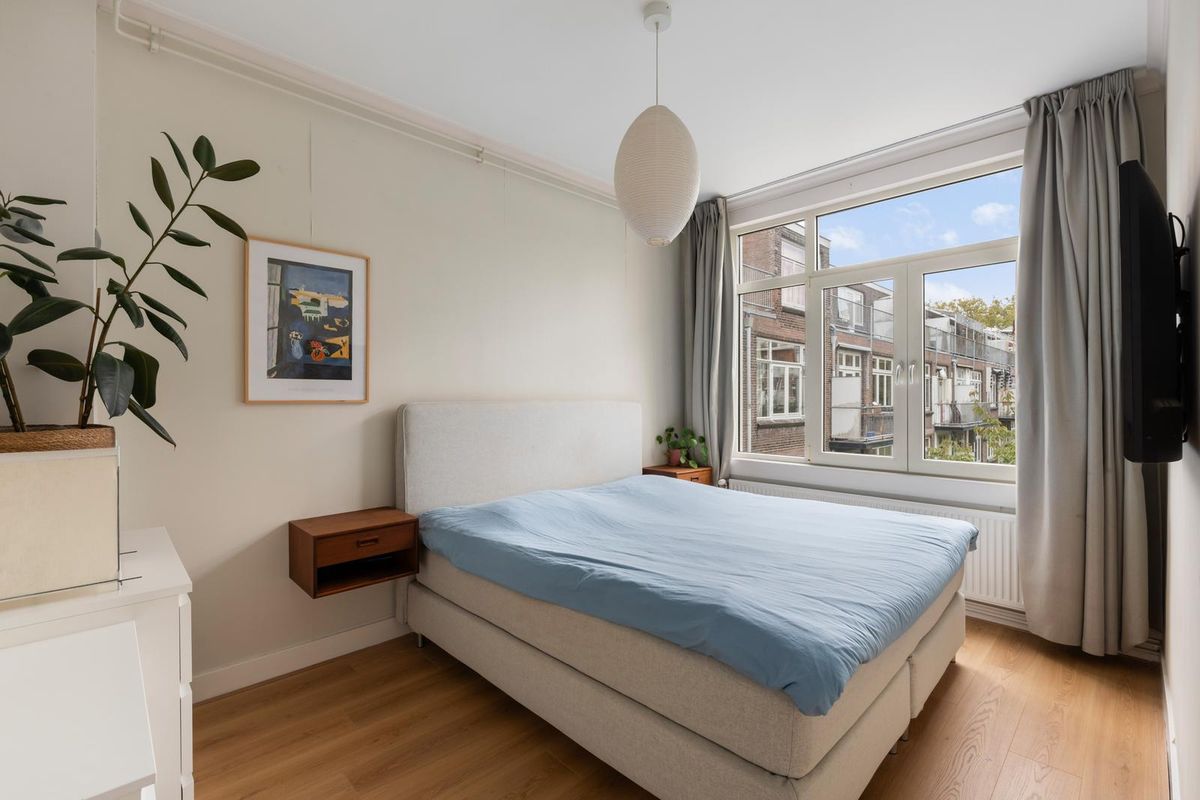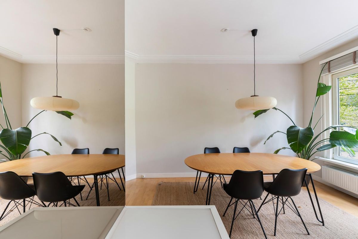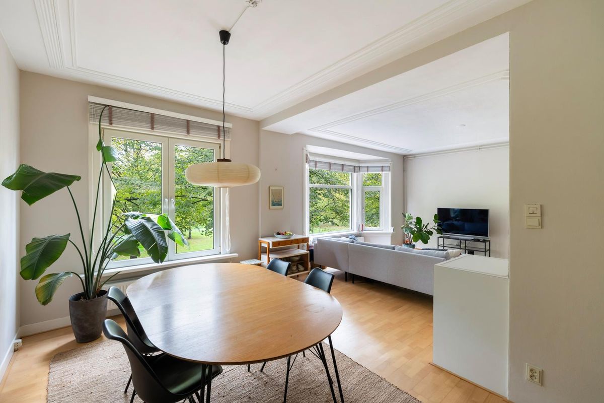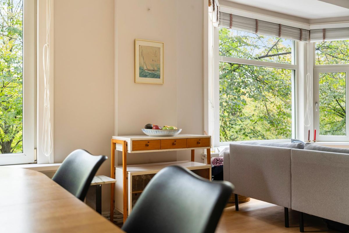 Ruime overloop met meterkast en toegang tot alle vertrekken op de verdieping. De ruime woon-/eetkamer is gelegen aan de voorzijde. Deze kamer beschikt over vele raampartijen waardoor er veel licht de woning binnentreedt wat zorgt voor een fijne, lichte sfeer. De raampartijen bieden een schitterend uitzicht over het Vroesenpark. Het hoge plafond is voorzien van karakteristieke ornamenten die zorgen voor een ruime charmante, authentieke uitstraling. Er is een mooie, natuurlijke scheiding tussen het leef- en eetgedeelte, wat zorgt voor een prettige indeling van de ruimte. Via de overloop bereik je de keuken. Deze keuken is mooi afgewerkt en beschikt over diverse soorten inbouwapparatuur zoals een 4-pits gasfornuis met afzuigkap, oven en een vaatwasser. Via de keuken bereik je het balkon, gelegen op het oosten. Hier kan je heerlijk genieten in de ochtend met een kop koffie! De master bedroom is gelegen aan de achterzijde van de woning. Dit is een ruime en lichte kamer. De 2e slaapkamer met vaste kast is multifunctioneel in te richten als bijvoorbeeld werk-, kinder- of slaapkamer. De moderne, volledig betegelde badkamer beschikt over een ligbad, douche, wasmachineaansluiting, toilet en een handdoekradiator.