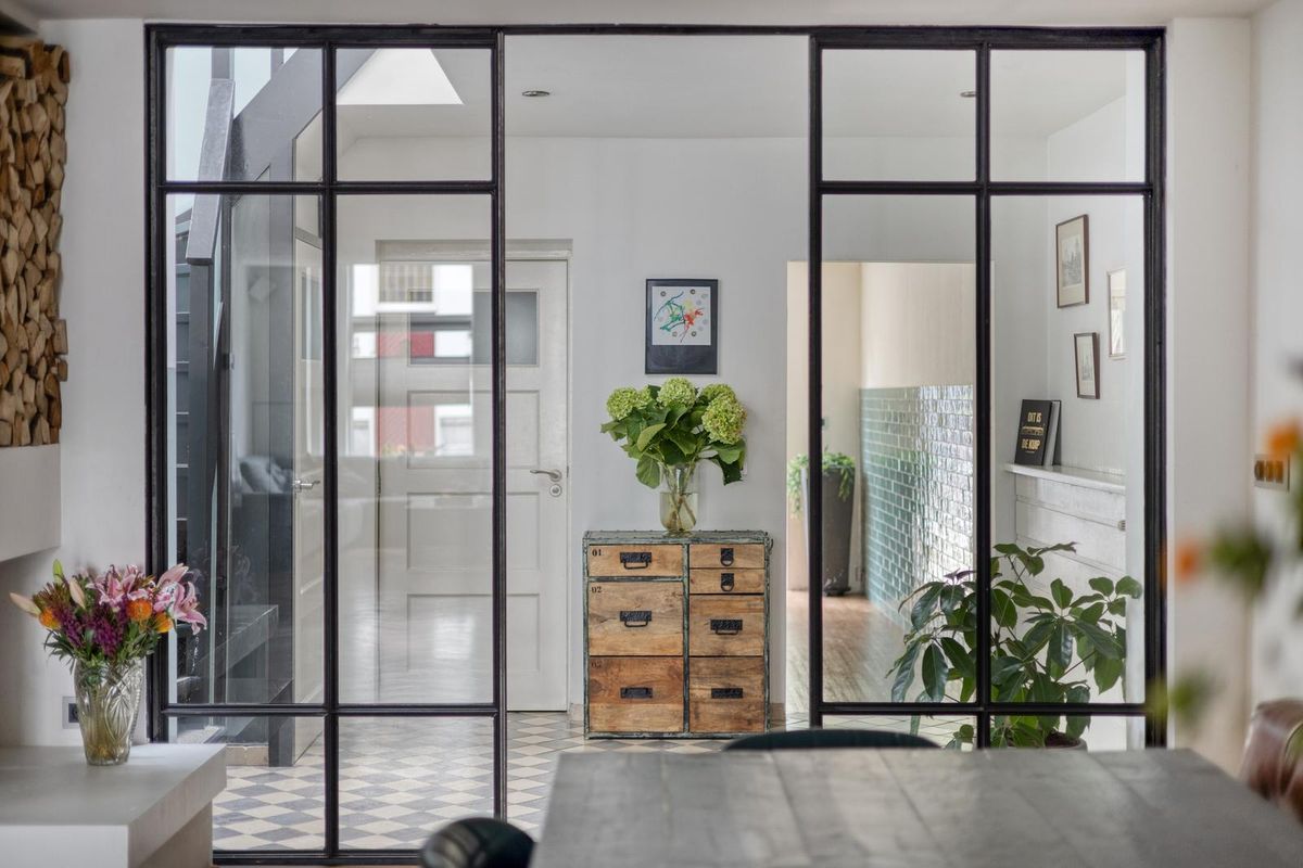 Na het parkeren stap je binnen via een nette entree die direct een warme indruk achterlaat. Dankzij het raampje in de voordeur én het extra raam erboven, komt het daglicht je meteen tegemoet. De vloer is afgewerkt met gezellige tegeltjes, wat perfect past bij de authentieke sfeer van het huis. De hal biedt toegang tot de woonkamer én een praktische inpandige berging: ideaal voor het opbergen van fietsen, voorraad of andere spullen.