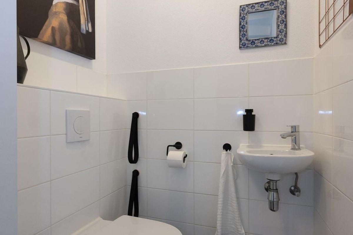 Op de eerste verdieping bevinden zich drie slaapkamers, waaronder een ruime masterbedroom met tweepersoonsbed en grote kledingkast. De andere twee kamers zijn netjes afgewerkt en multifunctioneel te gebruiken, bijvoorbeeld als slaapkamer, werkkamer of studeerkamer. De badkamer is luxe uitgerust met een ligbad, inloopdouche en dubbele wastafel met meubel. Er is ook een separaat toilet op deze verdieping aanwezig.