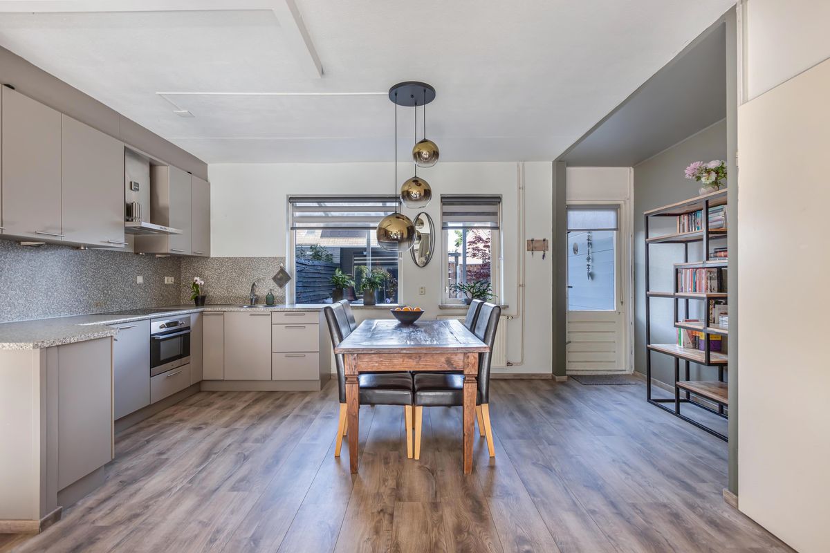 • Open keuken (in 2023 gerenoveerd) met diverse inbouwapparatuur en trapkast.