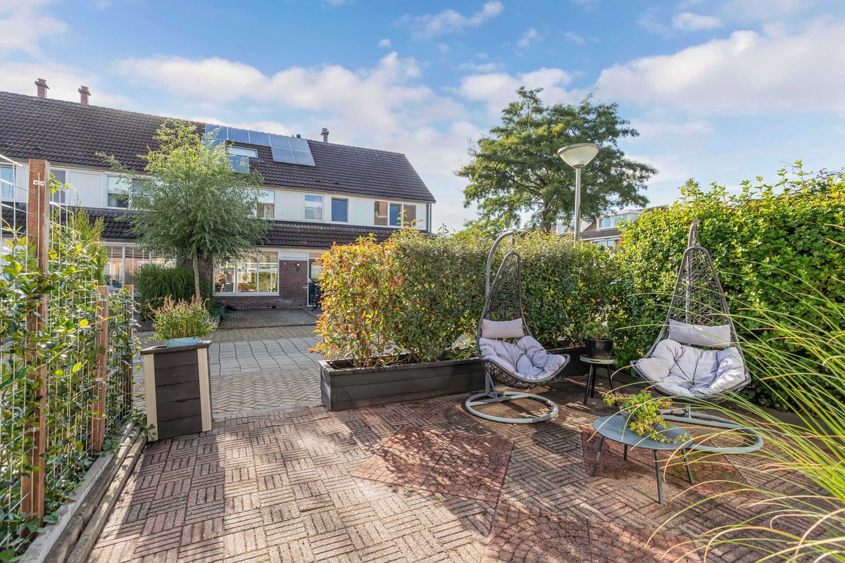 De achtertuin ligt op het oosten waar je kunt genieten van de ochtend- en middagzon. Heerlijk genieten zonder de hitte van de avondzon! Door de onderhoudsvriendelijke inrichting heb je er weinig werk, maar er wél veel plezier van. De vrijstaande stenen berging biedt ruimte voor fietsen, speelgoed en tuingereedschap.