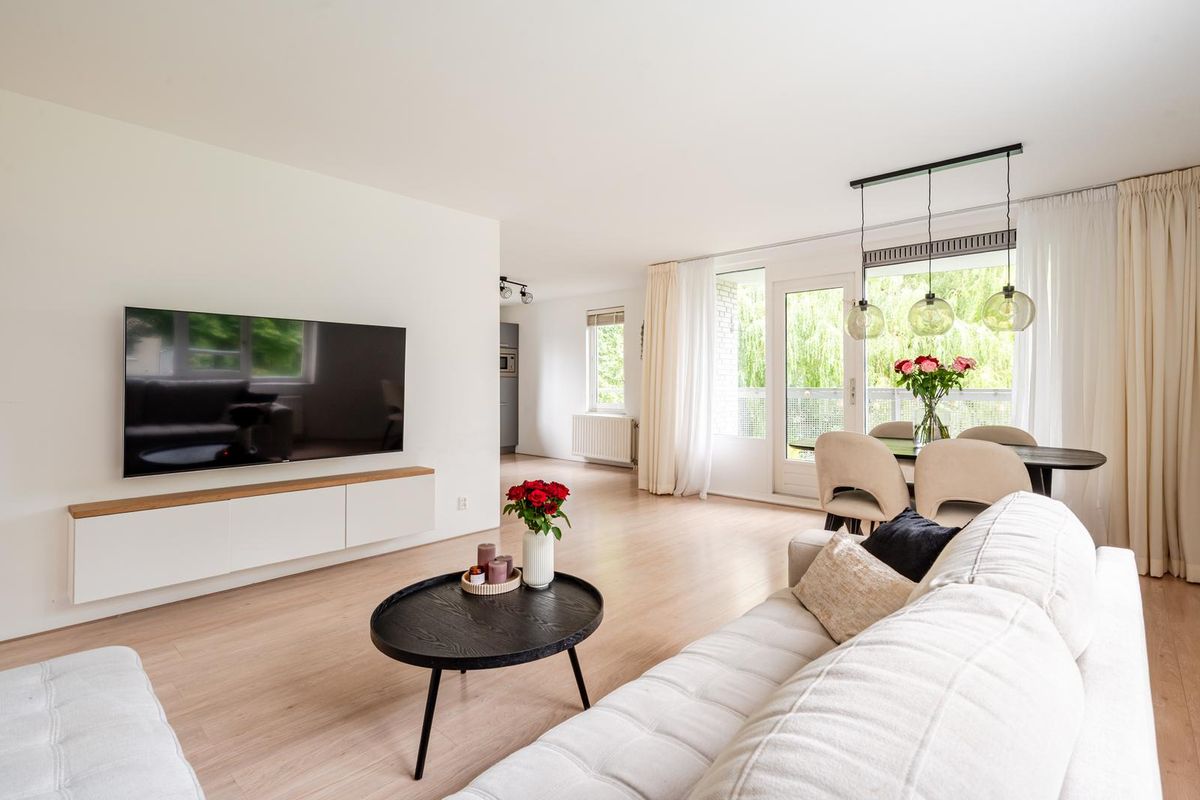 De woonkamer is royaal en voorzien van grote ramen die zorgen voor veel daglicht. Vanuit de woonkamer heeft u toegang tot het balkon. Het balkon heeft een hele fijne rustige ligging met uitzicht op veel groen en de stadsgracht.