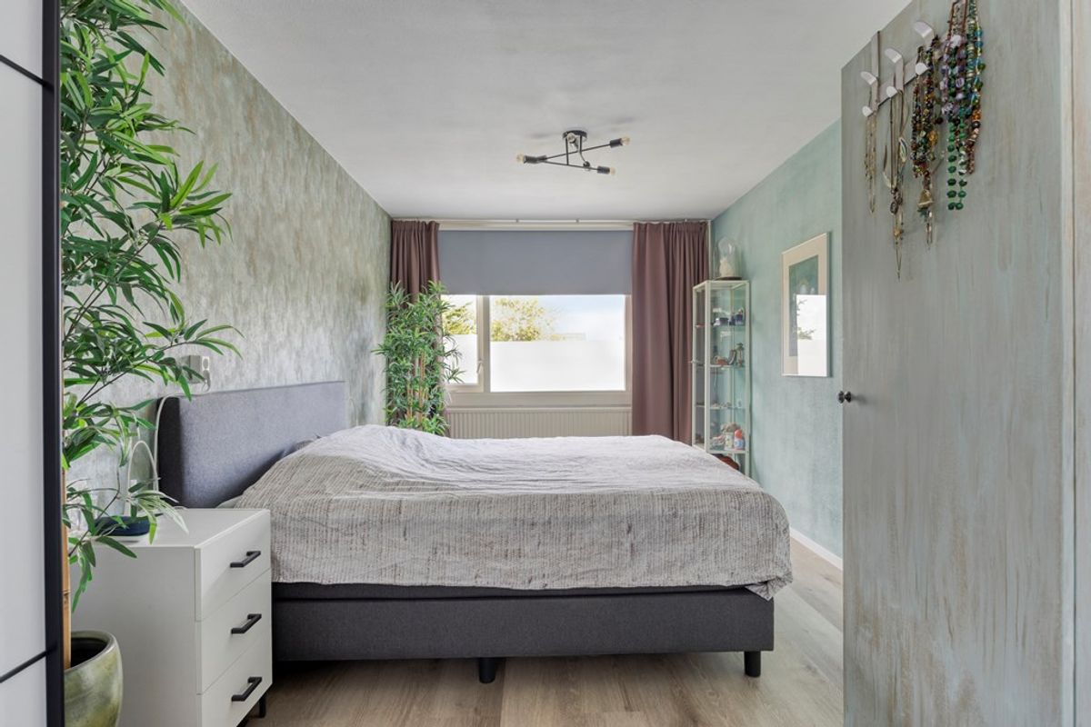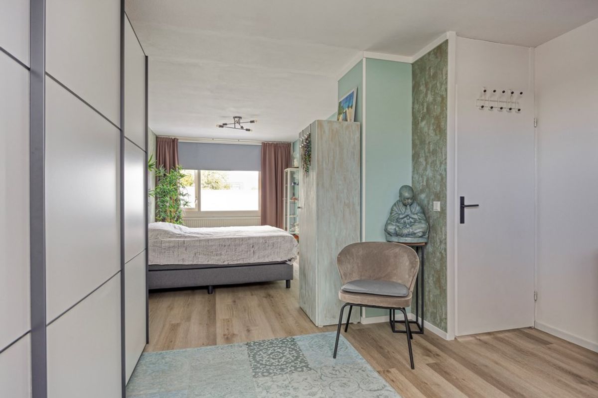 Op de eerste verdieping zijn oorspronkelijk drie slaapkamers, maar twee van de kamers zijn samengevoegd tot één grote ouderslaapkamer. Hierdoor is er ruimte voor een kingsize bed, een ruime kledingkast en zelfs een gezellige werk- of leeshoek. Uiteraard kun je de indeling ook weer eenvoudig aanpassen naar de oorspronkelijke situatie — jij hebt de keuze!