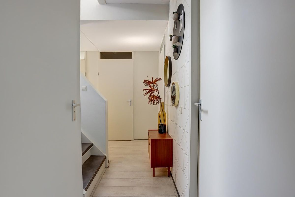 Je komt binnen in de hal met meterkast en toilet. Vanuit de hal is er toegang tot de 4 slaapkamers, waarvan drie met toegang tot de achtertuin. De badkamer is voorzien van een ligbad, douche en wastafelmeubel. Daarnaast is er een ruime (voormalige) garage, die nu uitstekend kan dienen als berging of hobbyruimte.