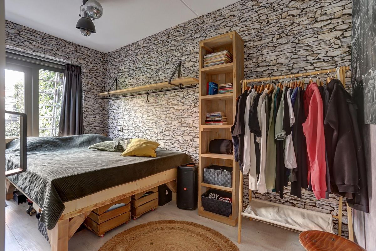 Zodra je boven bent valt direct de royale woonkamer op: een heerlijke plek met een sfeervolle houtkachel en prachtig uitzicht aan de voorzijde. De vide aan de achterzijde zorgt voor extra ruimtelijkheid. De open keuken met inbouwapparatuur is centraal gesitueerd, zodat koken en samenzijn hier hand in hand gaan. De pvc-vloer in visgraatpatroon geeft het geheel karakter, daarnaast loop je zo het sfeervolle naastgelegen dakterras op. Lekker om ’s avonds nog even te genieten.