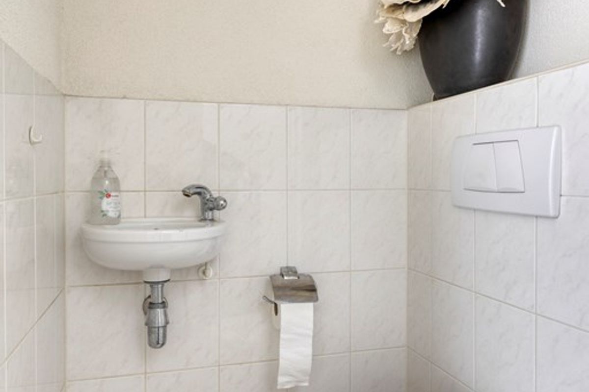 De eerste verdieping telt drie ruime slaapkamers, elk met een prettig formaat en een rustige uitstraling dankzij de laminaatvloer en lichte afwerking. De hoofdslaapkamer bevindt zich aan de achterzijde van de woning, met zicht op de tuin. De kamer aan de voorzijde is uitgerust met een inbouwkast, evenals de overloop. De badkamer is compleet ingericht met een ligbad, aparte douche, tweede toilet en een wastafel. De grote raampartij zorgt hier voor aangenaam daglicht en ventilatie.
