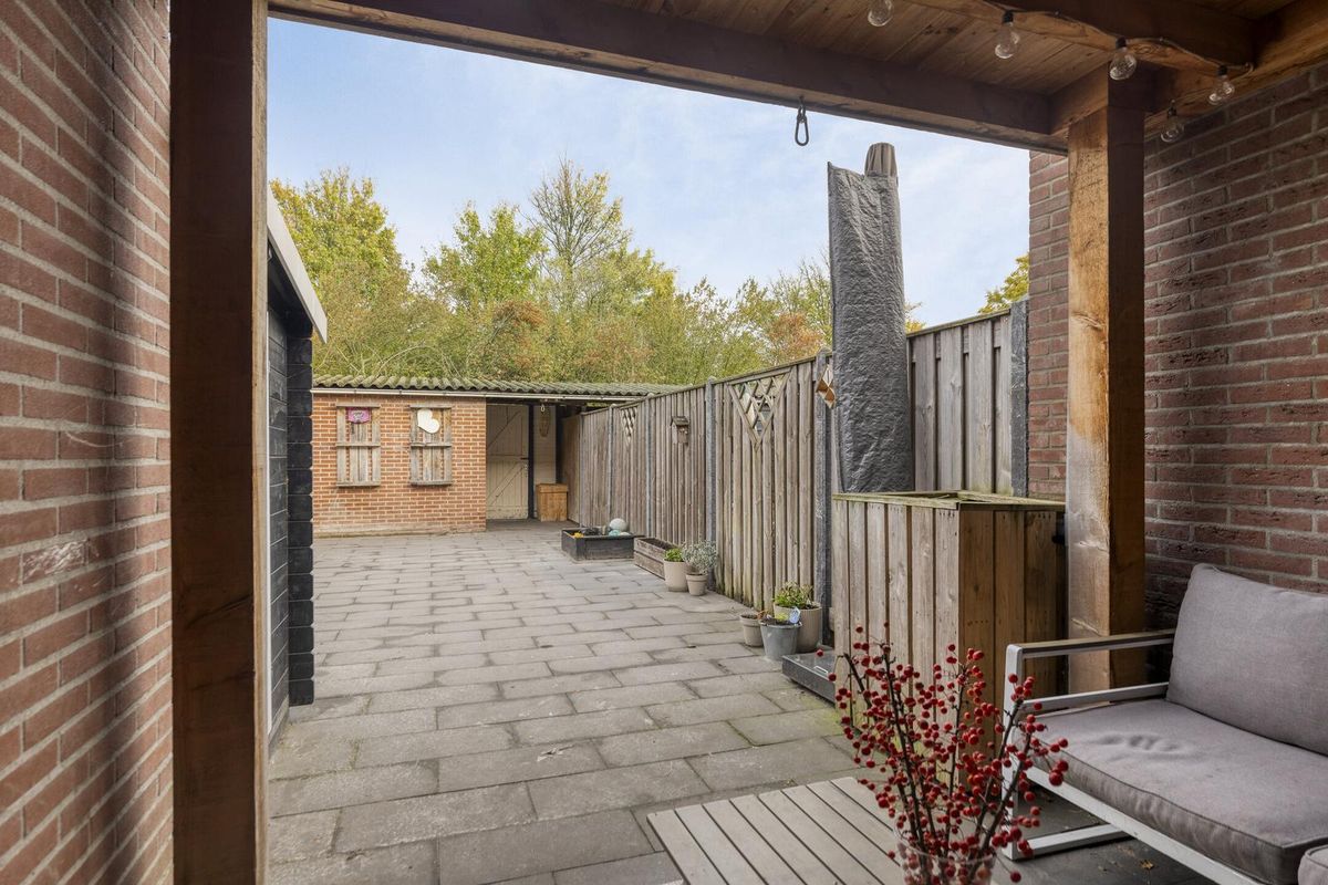 De woning beschikt over een ruime, keurig betegelde tuin met vrije achterom, gelegen op het noorden. Dankzij de omvang en de bebouwing eromheen vindt u hier altijd een zonnig plekje of juist een koel schaduwrijk hoekje. Aan de woning is een overkapping gebouwd, waar u aangenaam kunt vertoeven met familie en vrienden tijdens een zomerse borrel of een gezellig samenzijn. Achterin de tuin staat een vrijstaande stenen berging met elektra, perfect voor fietsen, tuingereedschap of extra opslag.