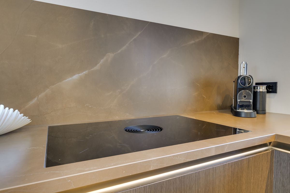 Step inside and feel the calm immediately. The front garden with private parking makes coming home a joy – no more circling around for a spot. Inside, a sleek hallway with storage and a modern toilet welcomes you. At the front, the open-plan kitchen with Siemens appliances and a stone countertop is the perfect spot to cook, chat, and live.