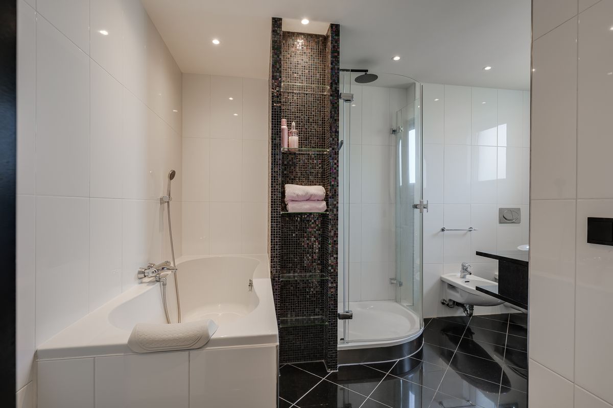 Op de eerste verdieping vind je een speels ingedeelde slaapkamer aan de voorzijde en een fantastische master bedroom met inloopkast aan de achterzijde. Hier word je wakker met het gevoel dat je in een boutique hotel logeert. De badkamer is een waar wellnessparadijs: ligbad, separate douche, dubbele wastafel, tweede toilet én een bidet – luxe in optima forma.