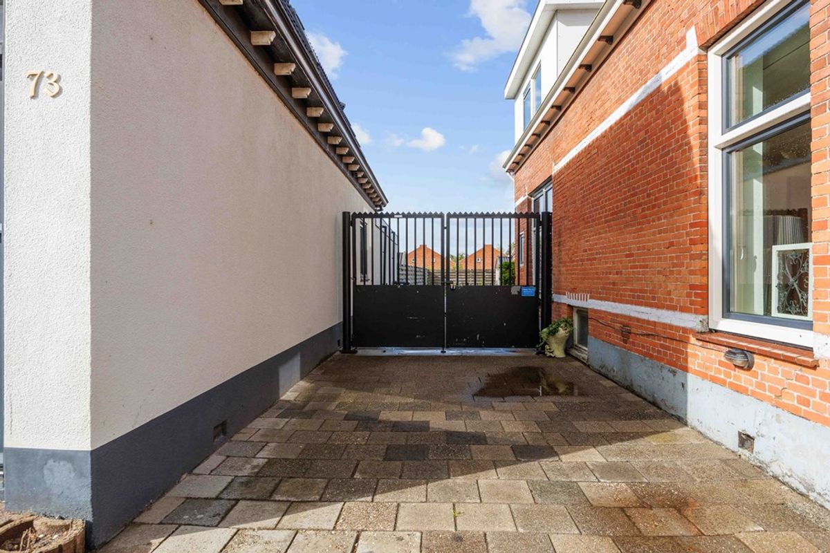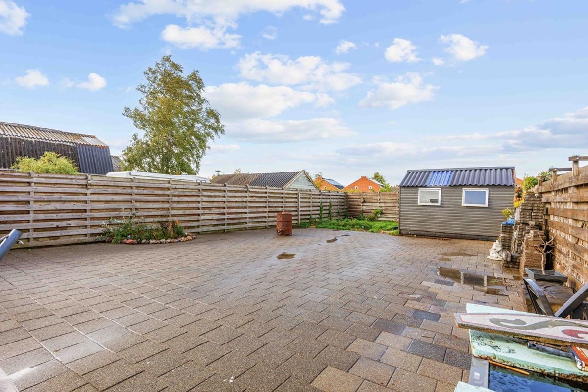Achter de woning ligt een diepe tuin waar u volop kunt genieten van de buitenlucht. De tuin heeft niet alleen veel ruimte, maar is ook voorzien van een schuur ideaal voor tuingereedschap of het stallen van fietsen. De oprit aan de zijkant van de woning zorgt voor parkeergelegenheid op eigen terrein en doorgang naar de achtertuin.