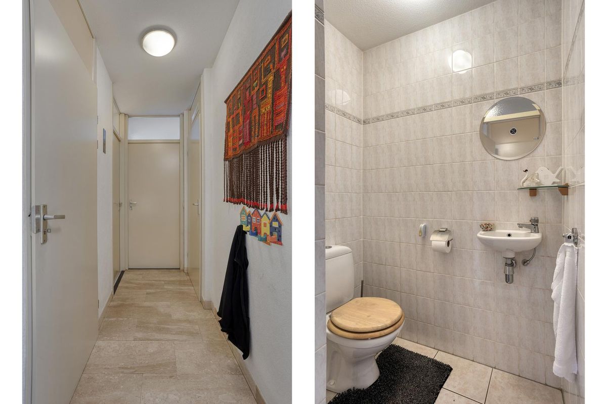 Badkamer 2 (7m²) beschikt over een staand toilet, wastafel en douche-cabine.