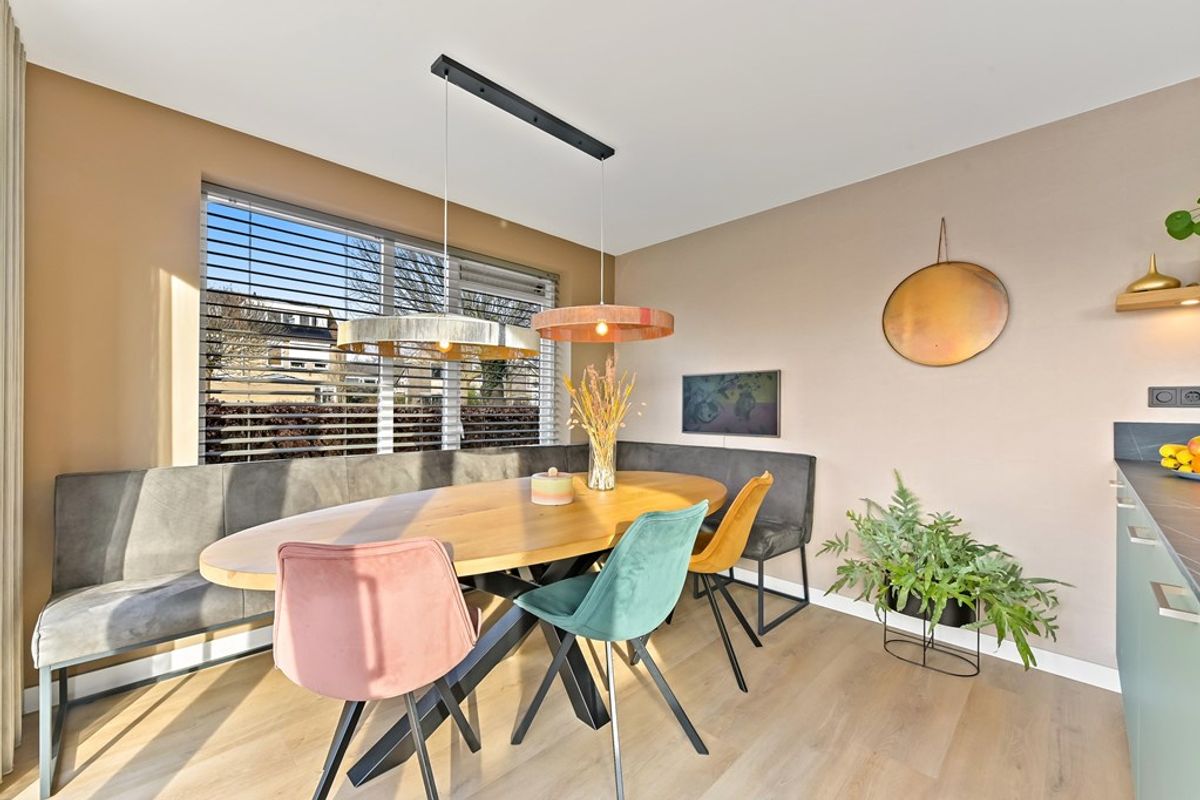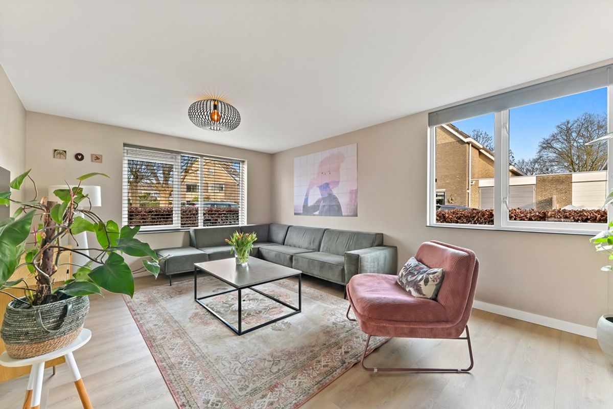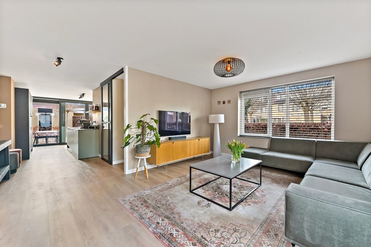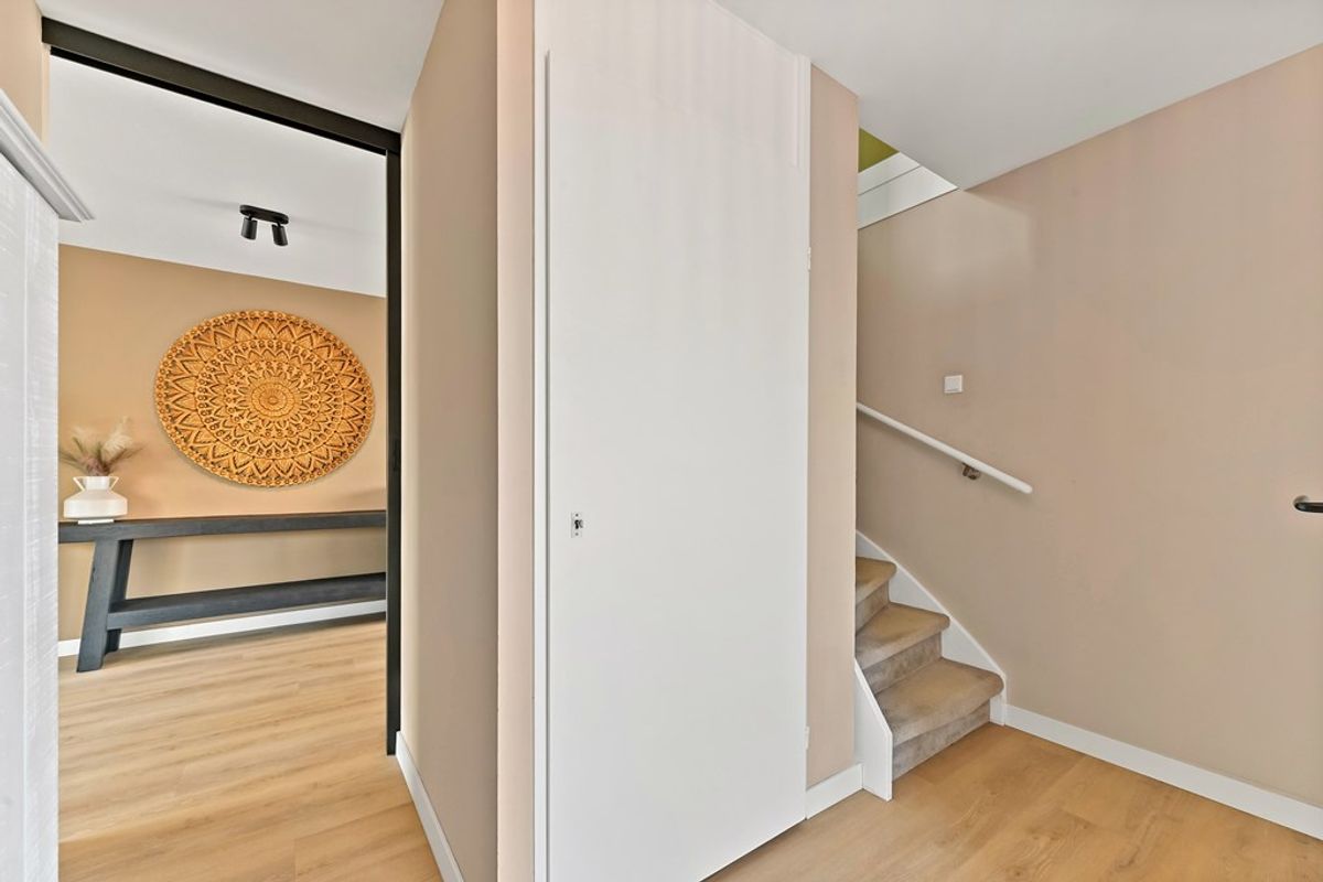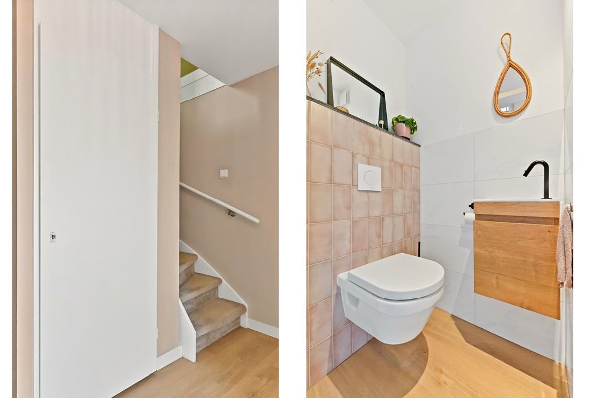 Via de verzorgd aangelegde tuin met beukenhaag en buitenkraan bereikt u de entree van de woning. U komt binnen in een lichte en uitnodigende hal met een gemoderniseerde meterkast, een luxe toilet met fonteintje in meubel, de trapopgang naar de eerste verdieping en een ruime trapkast welke op dit moment in gebruik is als wasruimte. Vanuit de hal betreedt u via een schuifdeur de royale woonkamer welke op een prettige manier is ingedeeld met een comfortabele zithoek met vrij uitzicht. De royale woonkeuken bevindt zich aan de achterzijde van de woning. Dankzij de grote raampartijen aan meerdere zijden is de gehele leefruimte heerlijk licht en voelt deze bijzonder ruim aan. De dubbele schuifpui vanuit de keuken biedt toegang tot de zonnige achtertuin. Hier kunt u de hele dag genieten van de zon. Aan de achtergevel is een elektrisch bedienbare zonwering gemonteerd, welke ter overname wordt aangeboden. In de tuin is een vrijstaande stenen berging en een praktische zij-uitgang aanwezig. De luxe woonkeuken met kastenwand en schiereiland vormt een centraal onderdeel van de begane grond en is uitgevoerd met hoogwaardige materialen en voorzien van diverse inbouwapparatuur. Zo vindt u hier naast de diverse opbergkasten onder andere een koel-vriescombinatie, inductie kookplaat met downdraft, combi-oven, vaatwasser en spoelbak met Quooker. Daarnaast is er in de woonkeuken plek voor een grote eettafel. Deze ruimte vormt daardoor dé ideale plek voor gezellige diners en lange avonden met familie of vrienden. De gehele begane grond, inclusief de meterkast, is in 2022 volledig gerenoveerd en afgewerkt met onder andere een fraaie PVC vloer met vloerverwarming, strak gestucte wanden en plafonds en stijlvolle details.