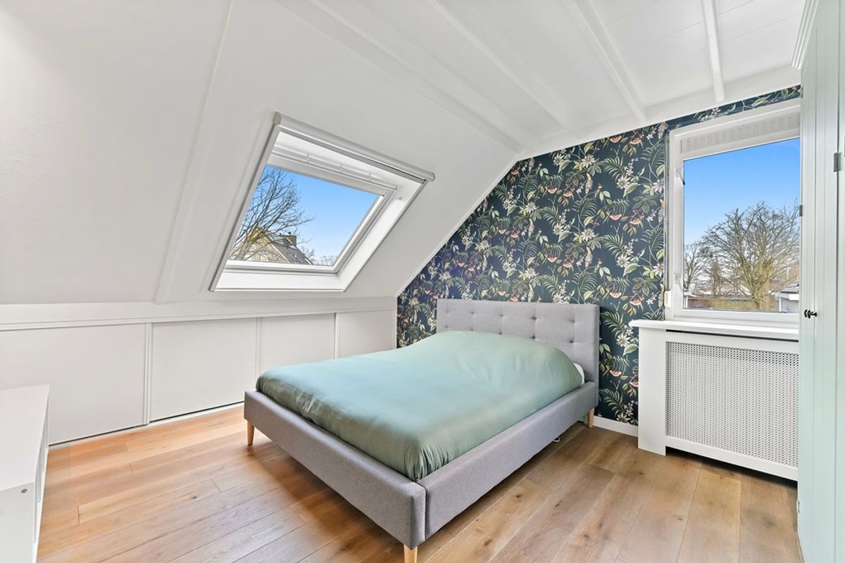 Op de eerste verdieping komt u uit op de overloop die toegang biedt tot de drie slaapkamers en de badkamer. De hoofdslaapkamer beschikt over een stijlvolle houten vloer en heeft twee raampartijen waardoor hier een aangename hoeveelheid daglicht naar binnen schijnt. In deze kamer vindt u veel bergruimte achter de knieschotten en daarnaast is er een vlizoluik aanwezig waarmee u toegang krijgt tot de bovengelegen bergvliering. De tweede slaapkamer met houten vloer bevindt zich aan de andere zijde van de woning. Ook deze kamer is licht en ruim van formaat en beschikt eveneens over veel bergruimte achter de knieschotten alsmede een vlizoluik naar een bergvliering. Beide slaapkamers zijn voorzien van een sfeervol houten balkenplafond. De derde slaapkamer is aan de voorzijde van de woning te vinden. Door de dakkapel is dit een perfecte ruimte om in te richten als kinderkamer of bijvoorbeeld als kantoorruimte aan huis. De badkamer in het midden vormt een ware eyecatcher! De badkamer is in 2025 gerenoveerd en uitgevoerd in een luxe, moderne stijl. In de badkamer vindt u een inloopdouche met rainshower en handdouche, wastafelmeubel met spiegelverlichting/verwarming, mechanische ventilatie (2026) en een tweede toilet. Vanaf de overloop is de opstelplaats voor de C.V. ketel bereikbaar. In deze kast vindt u bovendien een trap naar een andere bergvliering. De eerste verdieping is wederom luxe en modern afgewerkt. De gestucte wanden, sfeervolle inbouwspots en praktische indeling zorgen ervoor dat u hier direct kunt genieten.
