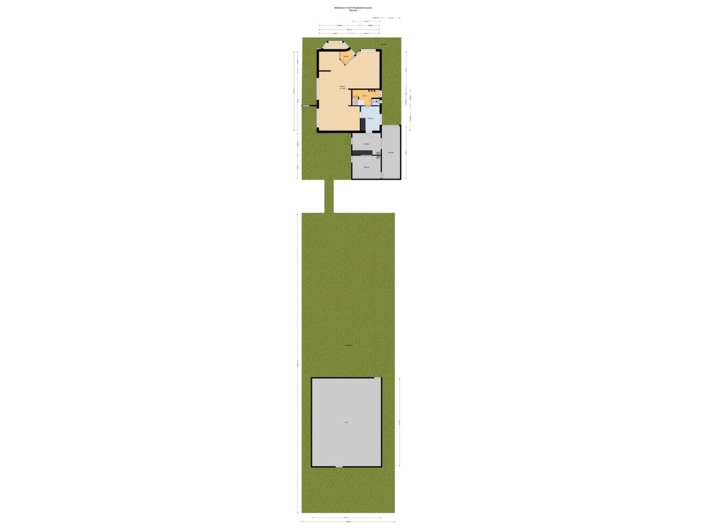 Voortuin en eigen inrit naar de ruime garage (6,96 x 6,17 m), met parkeergelegenheid voor meerdere auto’s op eigen terrein.