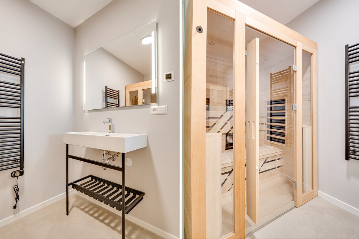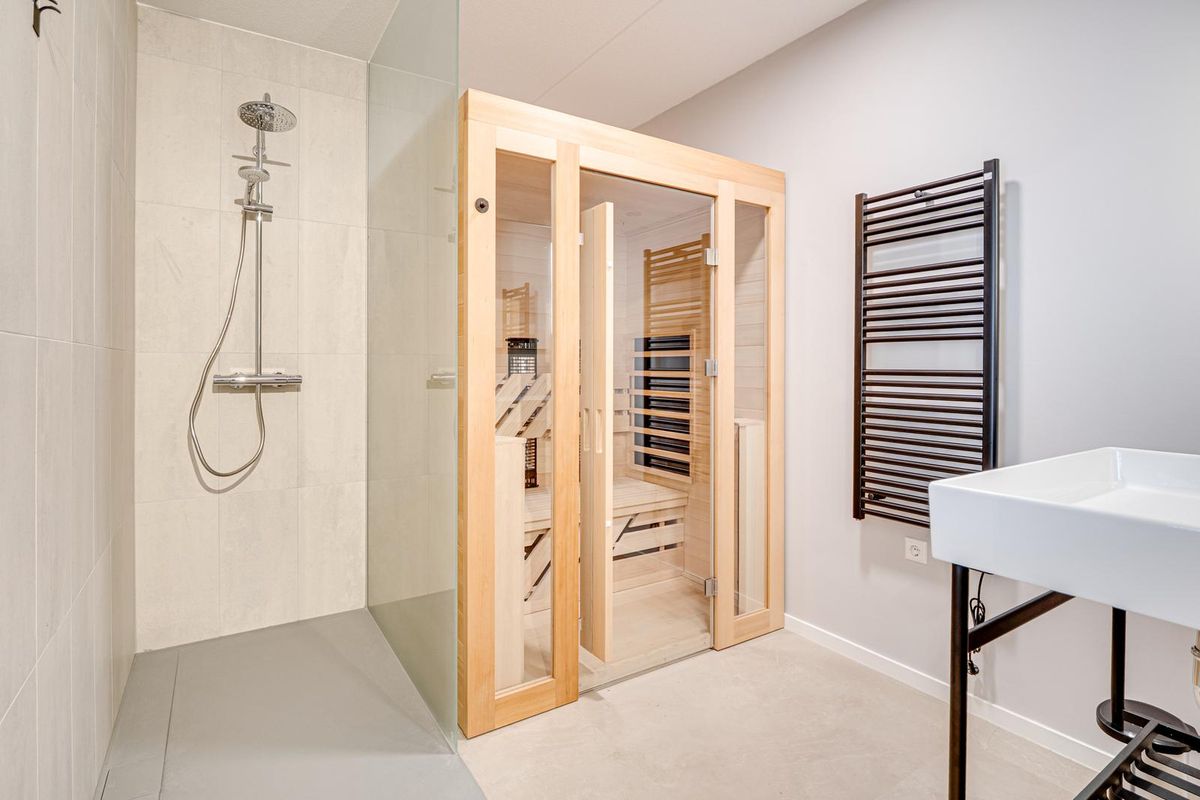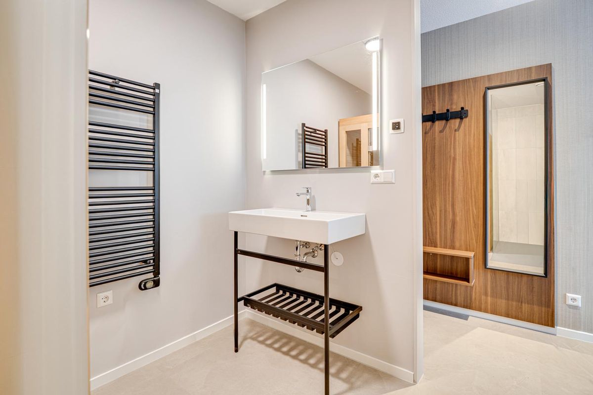 Elk appartement is ontworpen voor maximaal comfort. De moderne badkamer grenst direct aan de slaapkamer en beschikt over een inloopdouche met rainshower en een strakke wastafel. Het absolute hoogtepunt? Een privé 2-persoons infraroodsauna in elk appartement. Pure wellness, wanneer jij maar wilt.