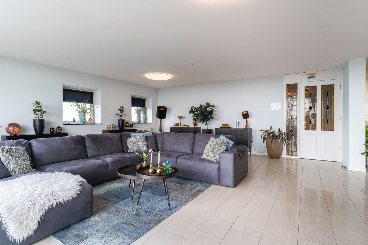 Via de ruime hal bereikt u de lichte woonkamer van maar liefst ca. 89 m². De kamerbrede raampartijen zorgen niet alleen voor een zee van daglicht, maar ook voor een fenomenaal uitzicht dat elke dag weer verrast.