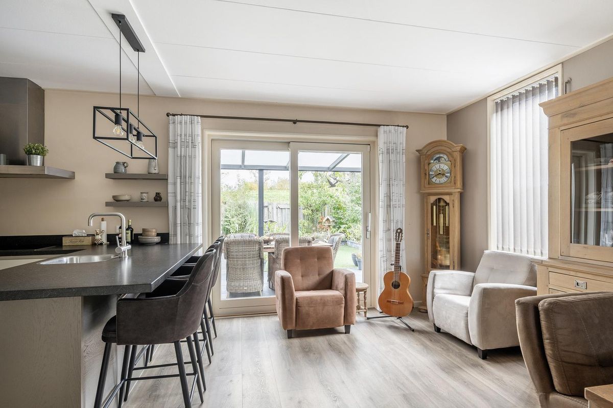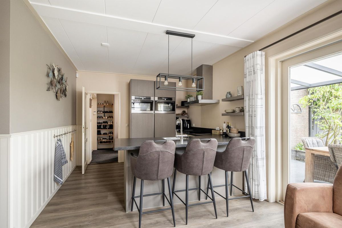 De voormalige garage is nu in gebruik als bijkeuken met een handige kastenwand, openslaande deuren naar de oprit, witgoedaansluitingen, cv-combiketel (Nefit, 2018), achterdeur en toegang tot de salon.