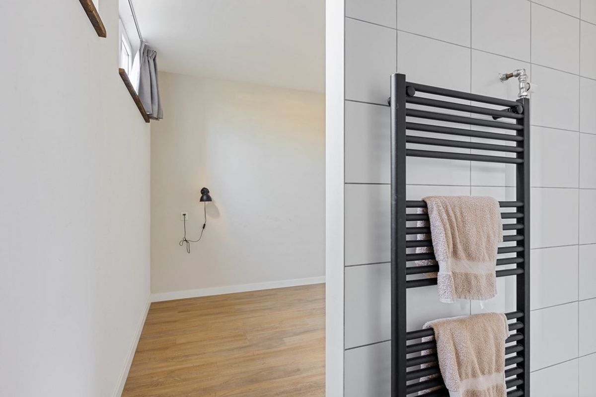 De open keuken sluit mooi aan op de woonkamer en draagt bij aan het open en ruimtelijke karakter van de woning. De keuken is praktisch ingericht met voldoende werkblad en kastruimte, waardoor koken hier comfortabel en efficiënt verloopt. Aangrenzend bevindt zich een extra bergruimte, wat zorgt voor extra gemak in het dagelijks gebruik en helpt om de woning netjes en georganiseerd te houden.