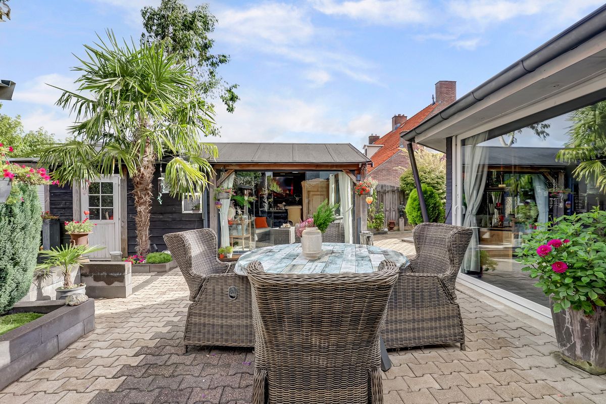 Wat deze woning echt uniek maakt, zijn de bijgebouwen. Het riante, geïsoleerde bijgebouw is voorheen in gebruik geweest als bedrijfsruimte en is voorzien van airconditioning. Deze ruimte biedt talloze mogelijkheden: denk aan een kantoor aan huis, een praktijkruimte, een atelier, of een eigen sportruimte. Daarnaast is er een ruim tuinhuis met 'party ruimte' en een aparte (fietsen)berging aanwezig.