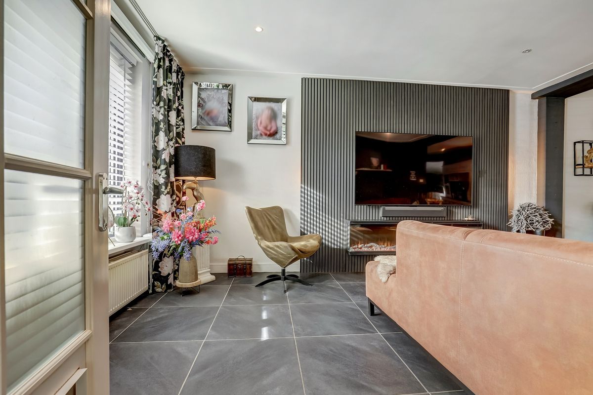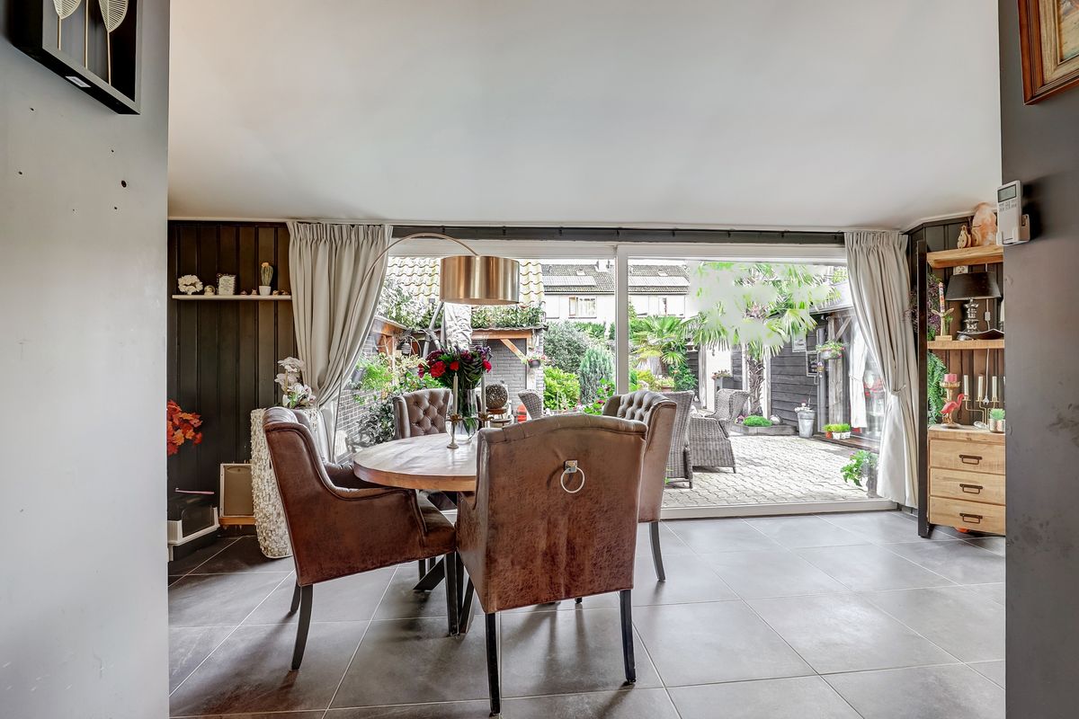 De woning is aan de achterzijde volledig uitgebouwd met een tuinkamer, die via een schuifpui directe toegang biedt tot de vrij gelegen tuin. Deze uitbouw zorgt voor een lichte en ruime woonkamer, die perfect is om te ontspannen en te genieten van het uitzicht op de tuin.