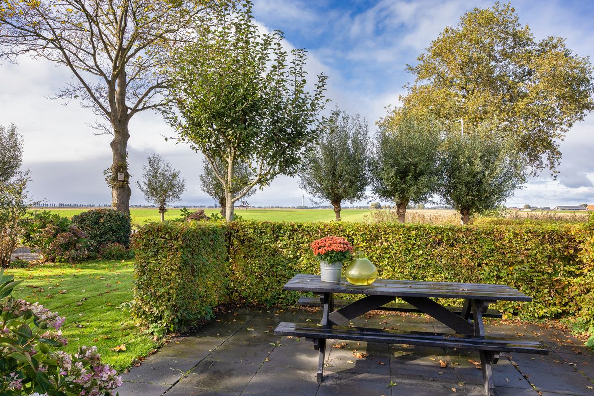 De achtertuin is gelegen op het oosten met meerdere zithoekjes en een overkapping aan de garage waar het heerlijk vertoeven is.