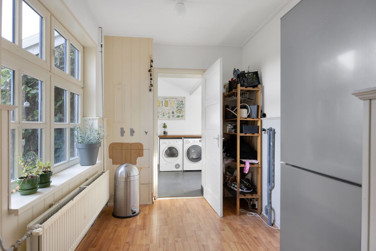 Daarna betreden we de woning via de voordeur en komen direct in de riante woonkeuken met een moderne rechte keukenopstelling van ca. 5 m. lang met rvs-aanrechtblad en een kastenwand, de keuken is voorzien is van diverse inbouwapparatuur zoals; koelkast, magnetron, oven, 4 pits gaskookplaat, afzuigkap, quooker, koffieautomaat (2021) en vaatwasser (2021). Via de openslaande deuren stap je zo de achtertuin in. Er is ook nog een kelder. Via de woonkeuken komen we in de hal met trapopgang, de hal geeft toegang tot de knusse woonkamer met authentieke details. Via de hal kom je ook in de bijkeuken met daarachter een wasruimte met wasmachine- en drogeraansluiting, tevens het toilet met hangcloset en fonteintje. Via de wasruimte kun je door de achterdeur naar buiten en kom je in de achtertuin. Vind je de tuin te klein dan is er een mogelijkheid deze uit te breiden.