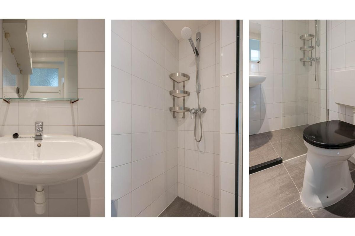 * Badkamer voorzien van lichte betegeling, duoblok-toiletopstelling, wastafel en inloopdouche.