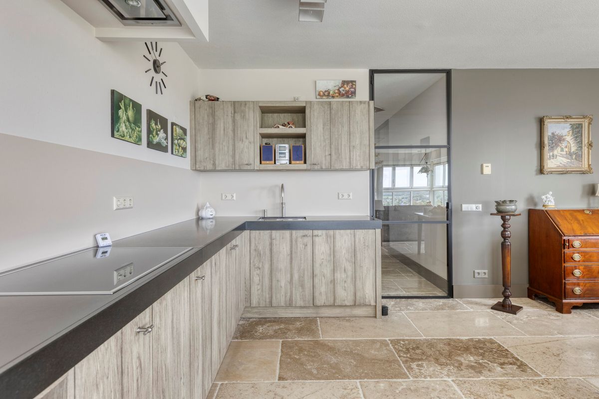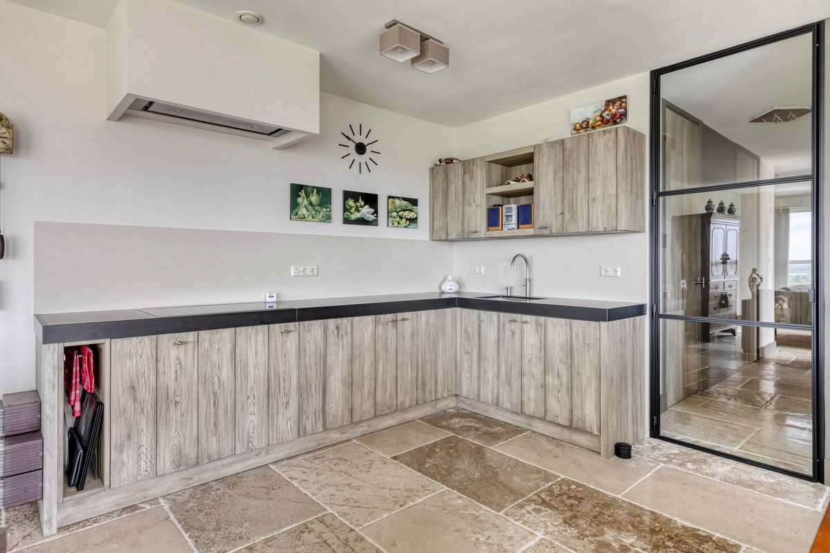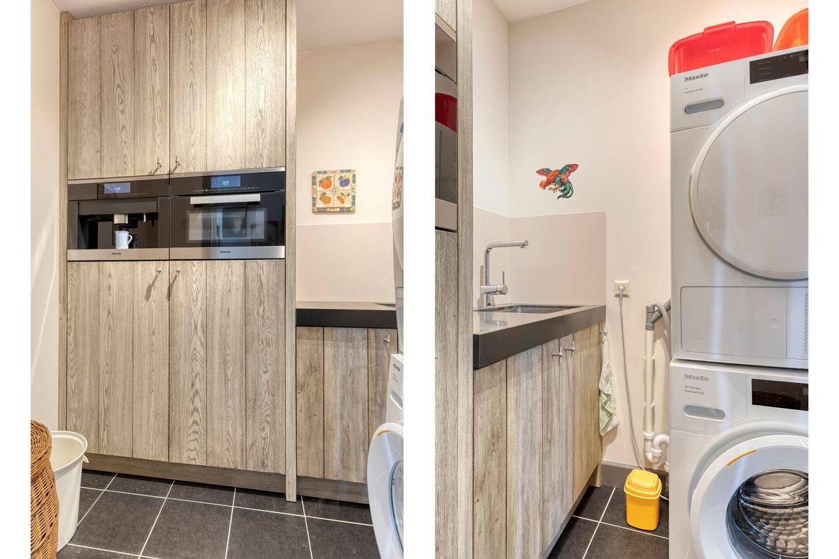 Bijkeuken (inpandige berging) met een extra koelkast en vriezer, espresso/koffiemachine en combi-oven. Verder is deze ruimte voorzien van de wasmachine- en drogeraansluiting.