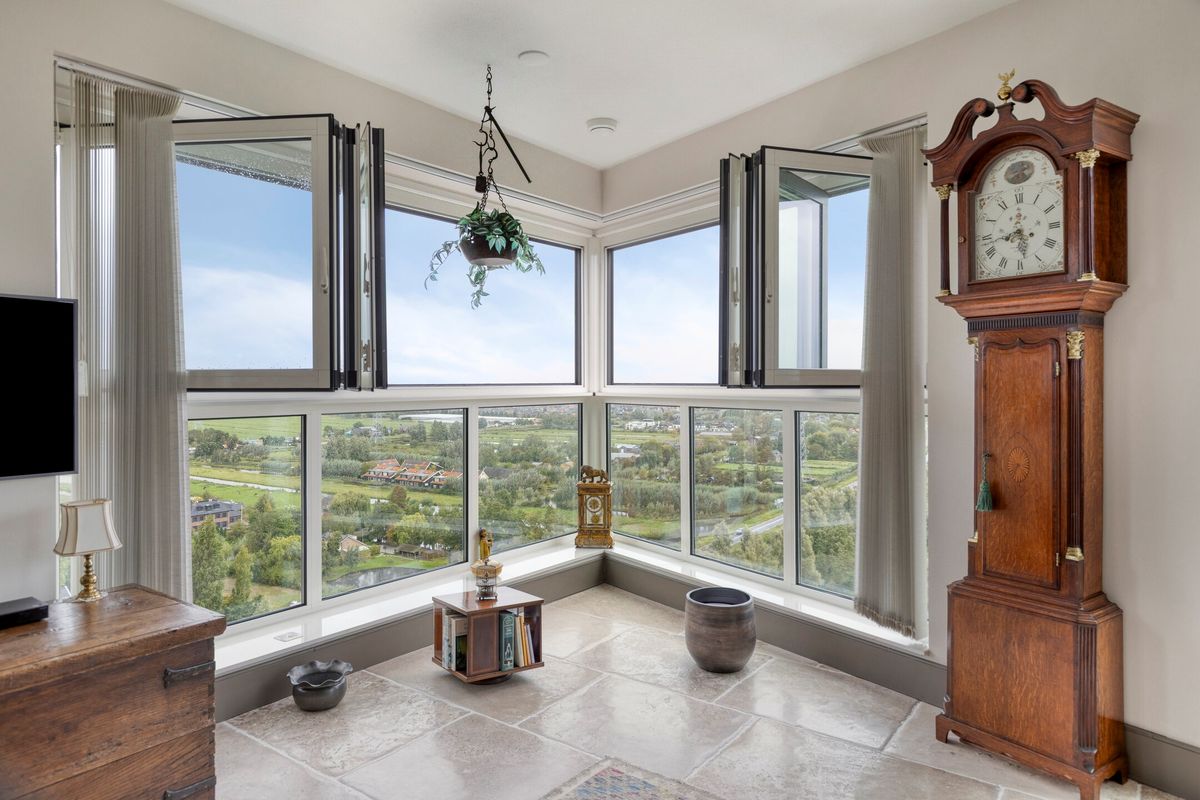 Voorzien van grote glaspuien met vouwramen die voor het bovenste deel weg geschoven kunnen worden. Hierdoor ontstaat er een ‘balkon-effect’ dat u een heerlijk buitengevoel geeft.