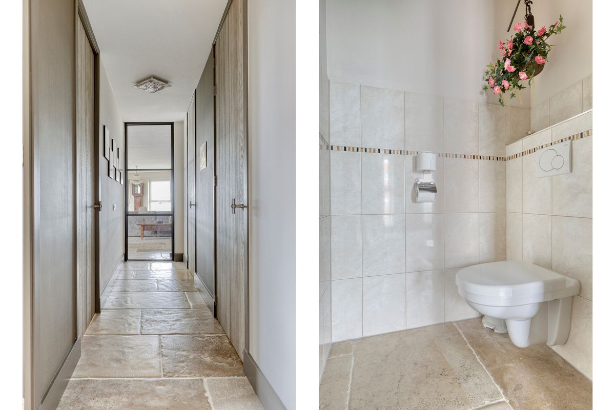 Het appartement is hoogwaardig afgewerkt met onder andere een fraaie stenen vloer, hoge maatwerk binnendeuren in lijn met de inrichting/uitvoering van de keuken en bijkeuken.