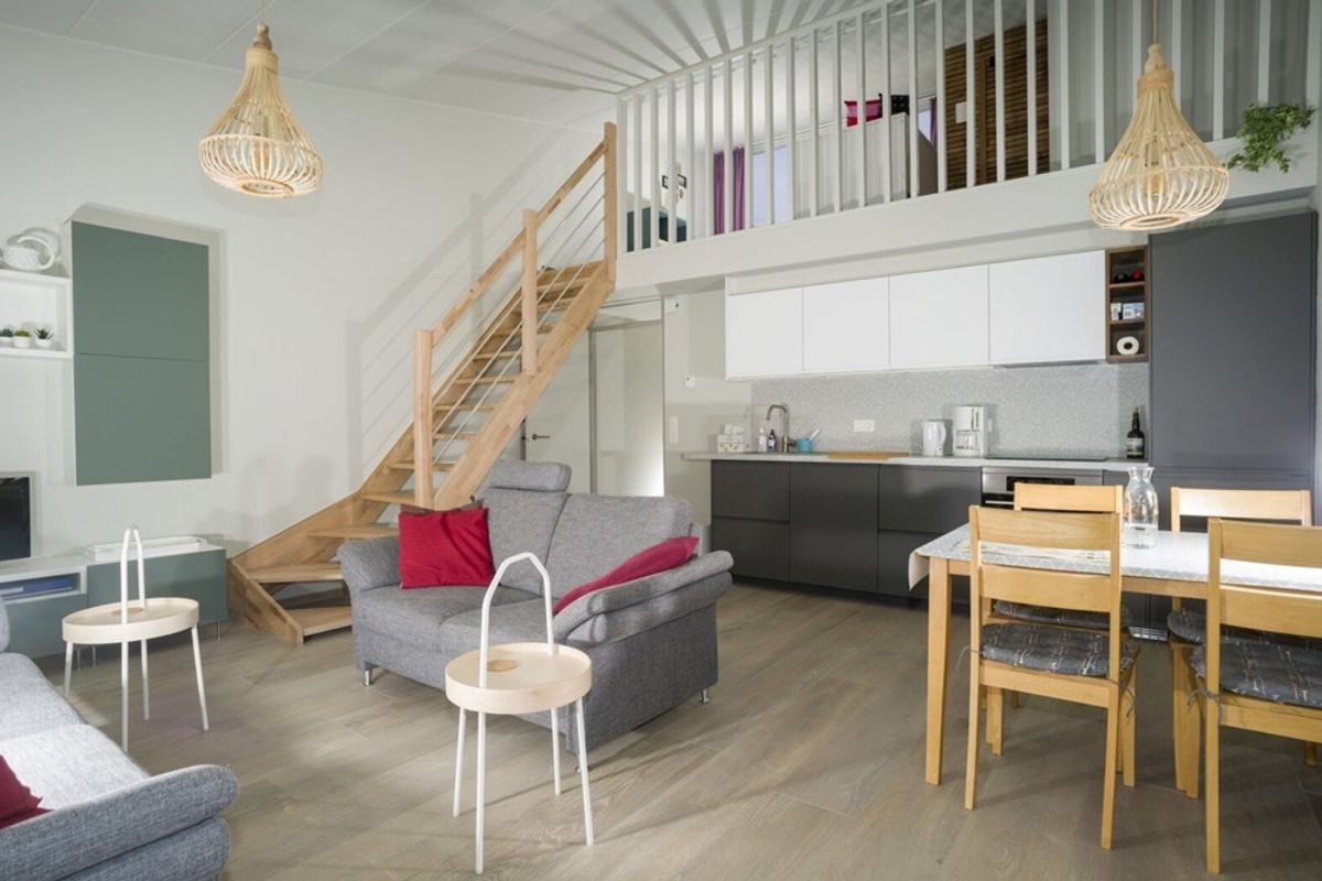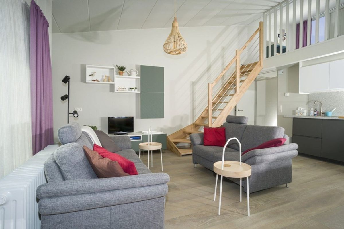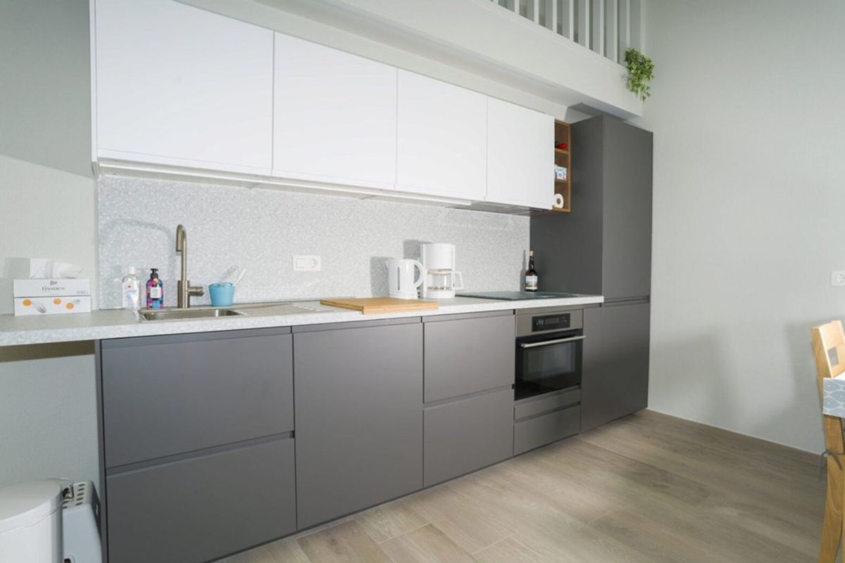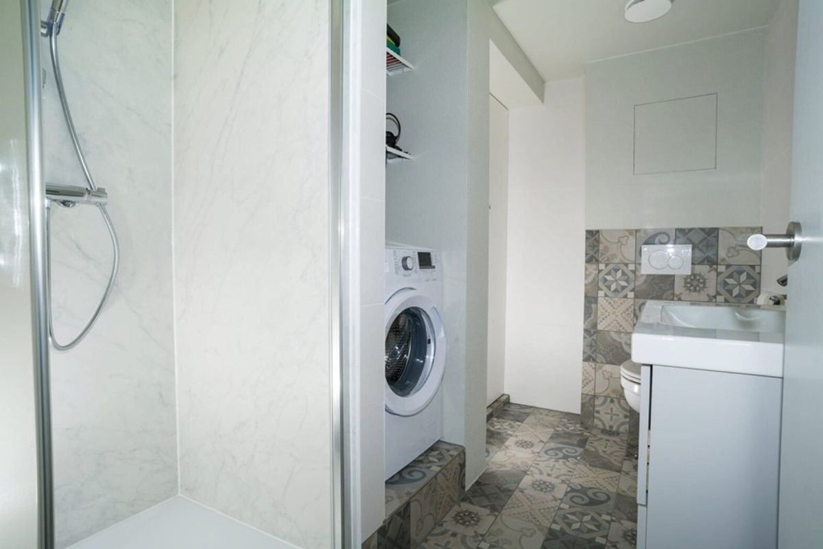 Via de trap aan de zijkant van het appartementenblok komt u op de eerste verdieping en bereikt u de voordeur van het appartement. Bij binnenkomst komt u in de hal met ruimte voor de garderobe. Vanuit de hal zijn alle ruimtes te bereiken. Bij binnenkomst in de woonkamer valt direct het vele licht op wat binnen schijnt door de grote raampartijen. Door de westelijke ligging schijnt de zon ’s middags ook heerlijk binnen waardoor u zelfs in het appartement van de zon kunt genieten. Op zonnige dagen kan men de grote schuifdeur volledig openen waardoor u het balkon optimaal betrekt bij de woonruimte. De open keuken is voorzien van alle nodige en geïntegreerde inbouwapparatuur zoals; 4-pits inductie kookplaat, afzuigkap, spoelbak, vaatwasmachine, koel/vriescombinatie en combi-magnetron. Er is 1 slaapkamer op de eerste verdieping en een tweede slaapkamer op de vide. De vide is te bereiken via een mooie eikenhouten trap in de woonkamer. De vide staat in open verbinding met de woonkamer maar kan bijvoorbeeld door gordijnen op te hangen afgesloten worden. De moderne badkamer heeft een douche, wastafel, toilet en opmaat gemaakte inbouwkasten ideaal voor het opbergen van huishoudelijke spullen.