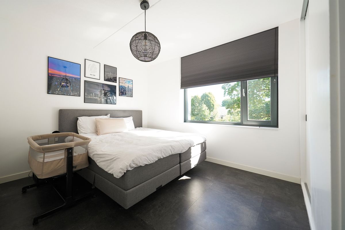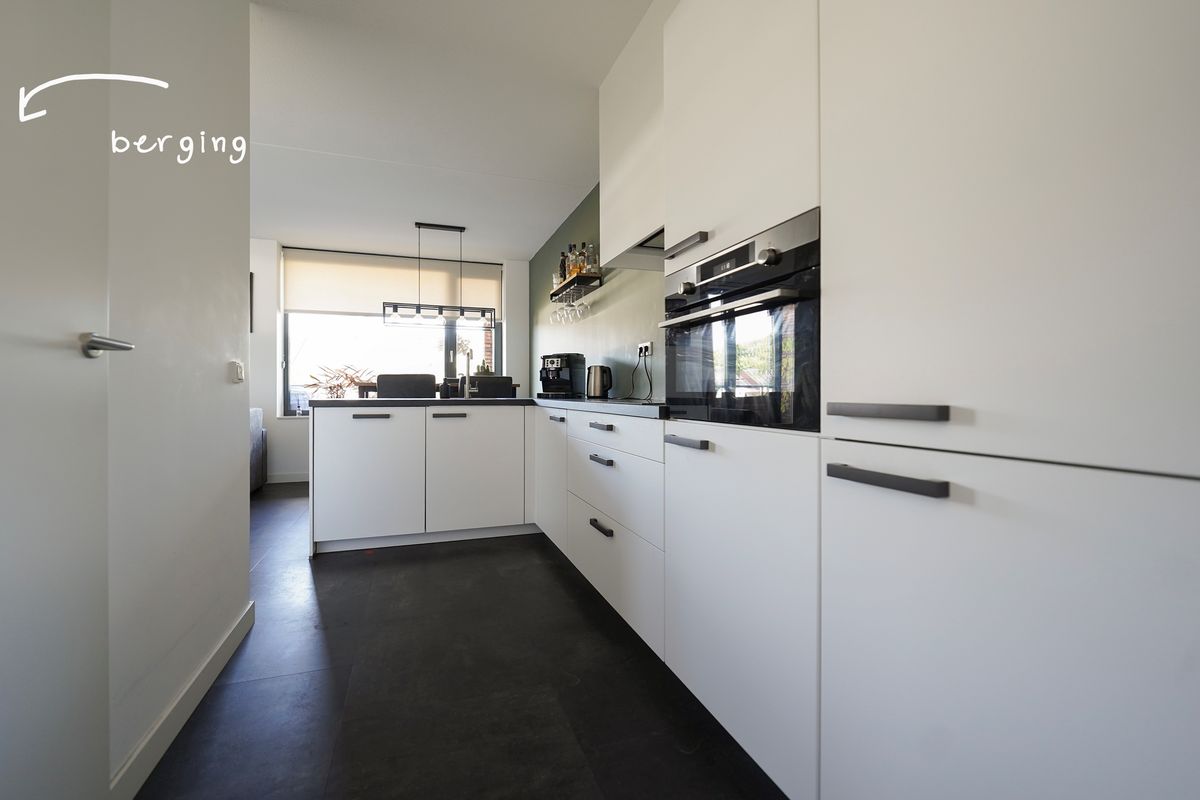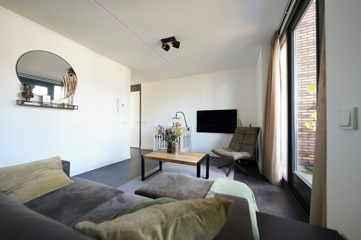 Allereerst kan je gemakkelijk parkeren direct bij je appartement. Het betreft een kleinschalig gebouw met totaal 12 appartementen en 2 hoofdingangen. De ruime eigen berging is direct bij de entree op de begane grond gelegen. Het gebouw is voorzien van een mooie, warme steen en de entrees zijn prachtig omlijst met een witte, gestuukte rand. Via een open trap komen we op de eerste verdieping waar 2 woningen te bereiken zijn, waaronder dit mooie appartement. Het appartement is op een vrije hoek gelegen. Bij binnenkomst is er ruimte voor de jassen en de schoenen en we lopen dan ook direct de gezellige woonkamer in. Mij valt de grote raampartijen op die lekker veel daglicht binnen laten. Er is een fijne zithoek mogelijk waar zich ook de deur bevindt naar het ruime balkon van ruim 11 m2. Dit balkon heeft een gemetselde rand waardoor je dus ook lekker veel privacy in je appartement hebt. Op dit balkon kun je heerlijk genieten van de middag en de avondzon en kijk je vrij over de wijk. Weer binnen loop ik door naar de mooie, strakke hoekkeuken met verrassend veel opbergruimte. Deze keuken is voorzien van alle inbouwapparatuur en bij deze keuken is er ruimte voor een fijne eettafel. Vanuit de keuken is er toegang naar een afgesloten bergruimte waar ook de wasmachine en droger zich bevinden. Ook is hier ruimte voor wat extra voorraad en/of de stofzuiger etc. De 2 slaapkamers zijn aan de achterzijde gelegen aan de oostzijde. De grote slaapkamer is voorzien van een ruime inbouwkast. De tweede slaapkamer heeft een fijn groot raam aan de korte zijde van het gebouw. Het grote voordeel van een hoekappartement! De badkamer is bij de entree gelegen en deze is voorzien van een ruime inloopdouche met glazen wand, een mooi wastafelmeubel met een chique zwarte wastafel en kraan en het vrijhangende toilet. De gehele woning is voorzien van een strakke pvc-vloer met vloerwarming. Ideaal! Alle wanden zijn glad gestuct en gesausd. De verwarming wordt geregeld middels een warmtepomp en er zijn zonnepanelen aanwezig op het platte dak van het gebouw.