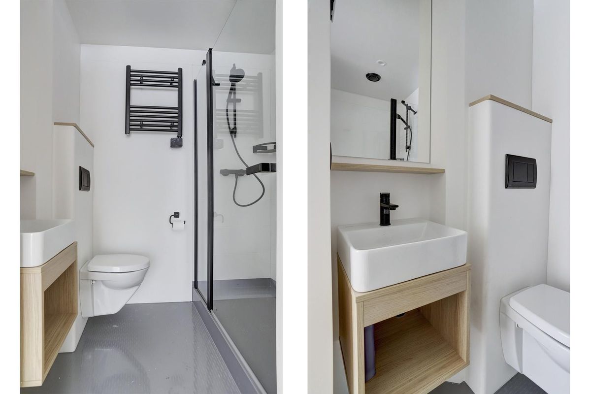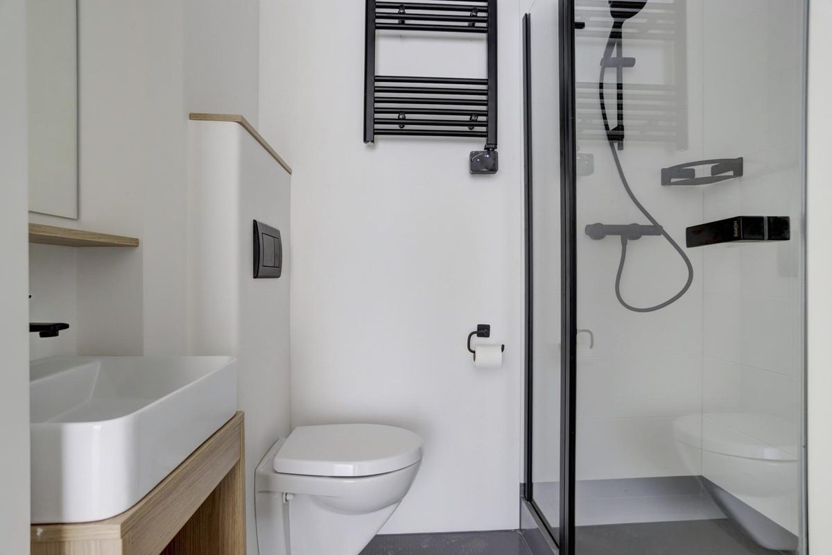 De badkamer is modern en netjes afgewerkt met een douchecabine, wastafelmeubel en toilet. Tevens is er een aparte technische ruimte met de boiler-opstelling, mechanische ventilatie en bergruimte.