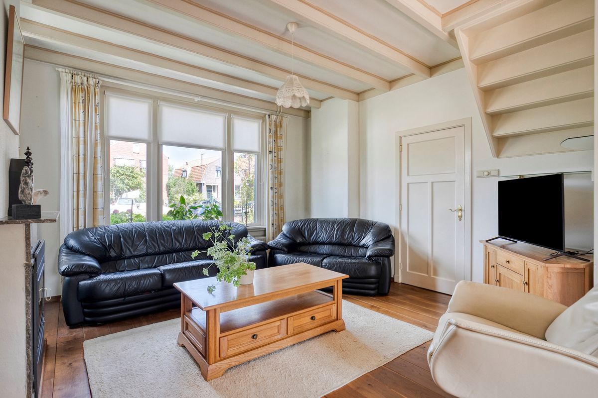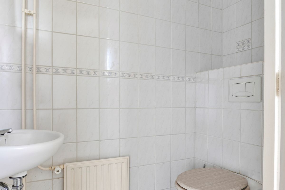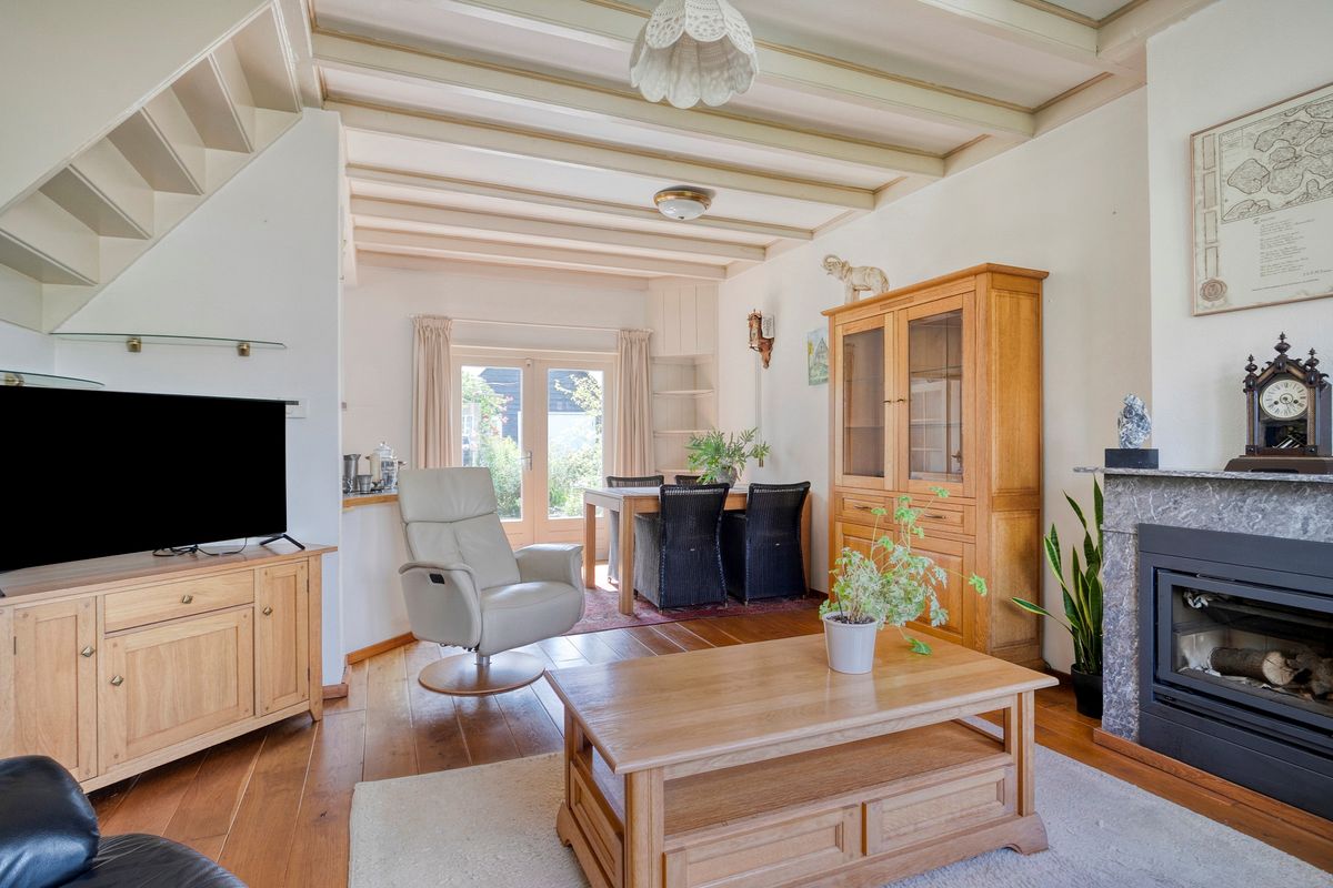 U komt binnen in de hal met meterkast en trapopgang, vervolgens in de lichte en sfeervolle woonkamer. Door de diepe voortuin is er een mooi zicht op de straat, terwijl u aan de achterzijde uitkijkt over de tuin -via de openslaande tuindeuren-.