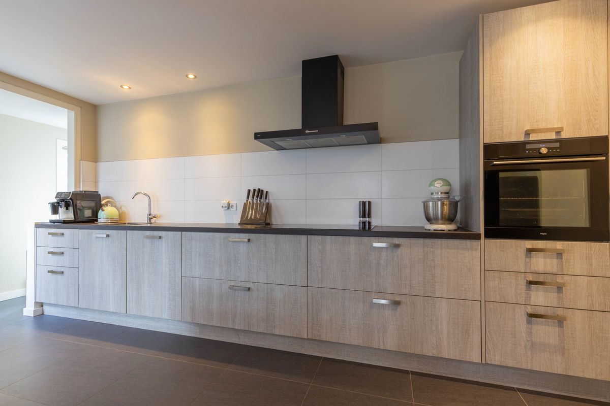 De moderne open keuken (2016) is uitgerust met diverse inbouwapparatuur en biedt een ideale plek voor kookliefhebbers. Vanuit de keuken staat u in direct contact met de tuin, waardoor koken en buiten leven mooi samengaan. Aansluitend aan de keuken is er een praktische bijkeuken met aansluitingen voor wasmachine en droger en een pantry.