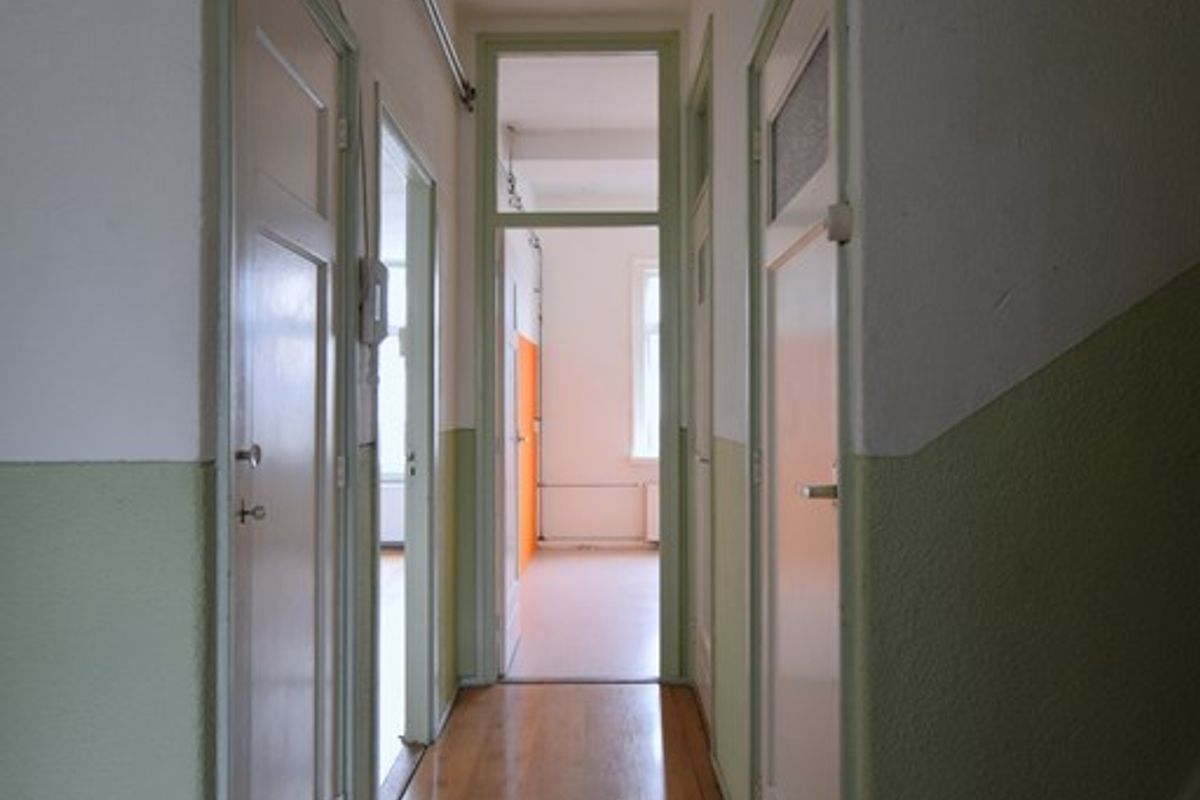 Gang met separaat toilet met fonteintje. Vanuit de gang is er toegang tot alle vertrekken en tot de vierde verdieping.