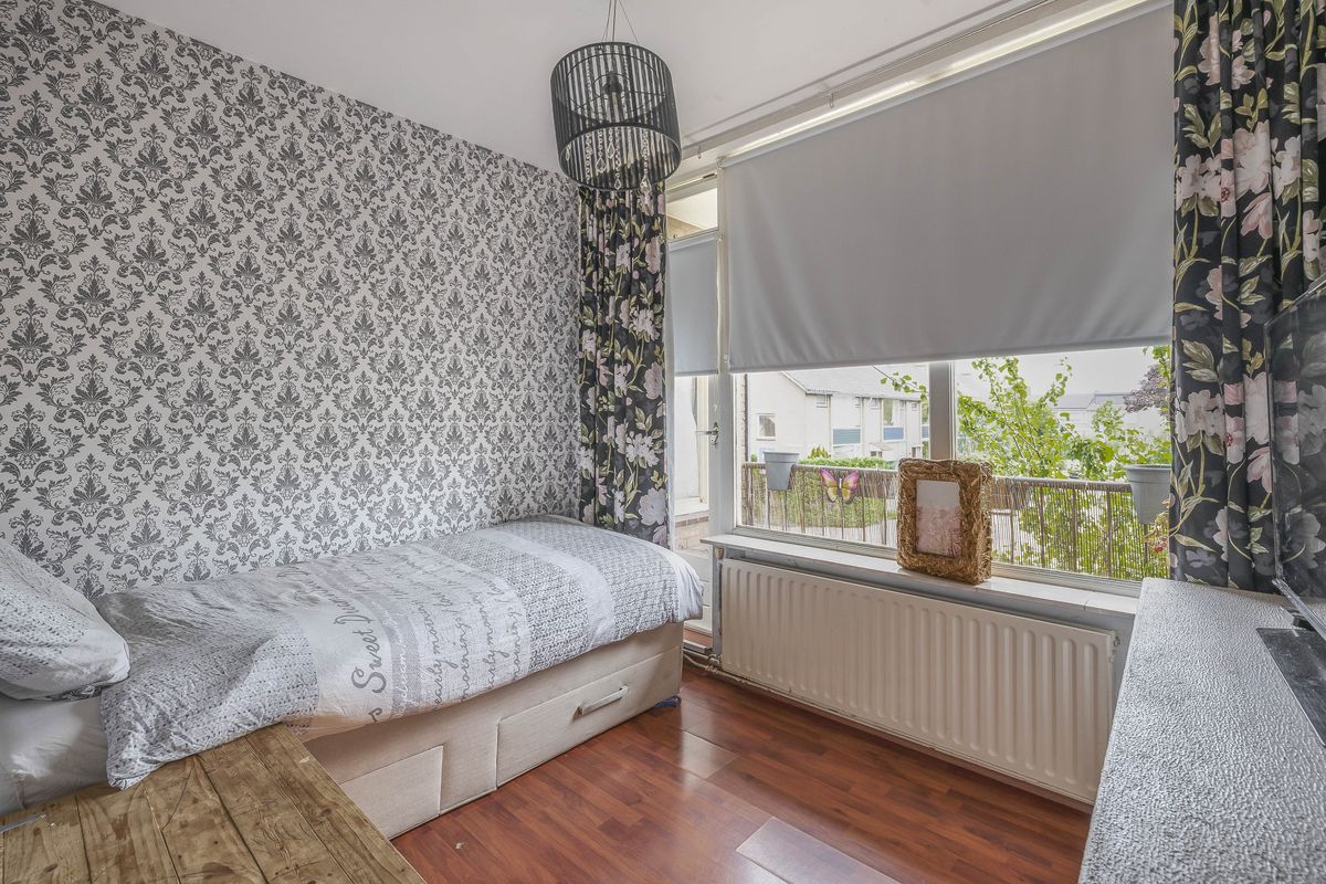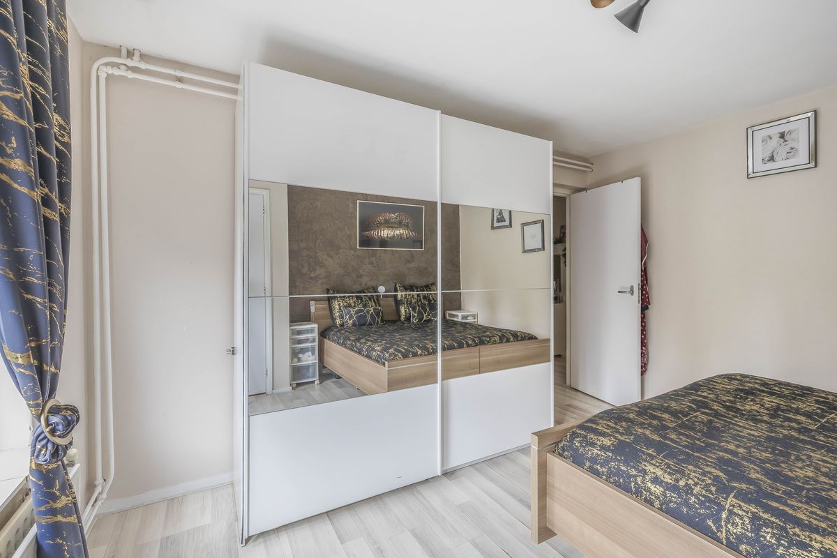 Aan de voorzijde van de woning zijn twee slaapkamers. Deze kamers zijn beide via de hal te bereiken. De grootste slaapkamer heeft toegang tot het balkon op het oosten, dat aan de voorzijde van het appartement ligt.