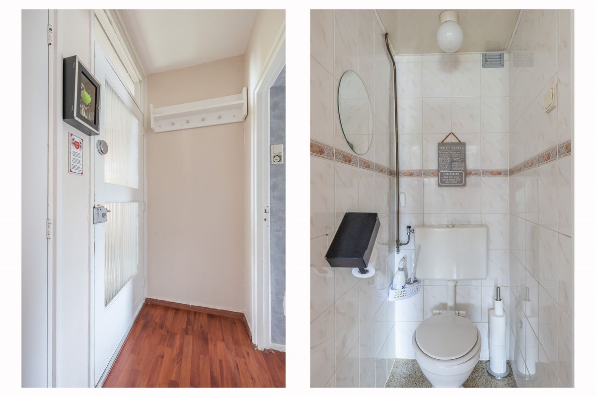 De eerste verdieping van dit maisonnette appartement beschikt over een hal met toilet en de vernieuwde meterkast. Vanuit de hal loop je zo de doorzon woonkamer in. Deze woonkamer is met een lengte van ruim 9 meter lekker ruim en licht.